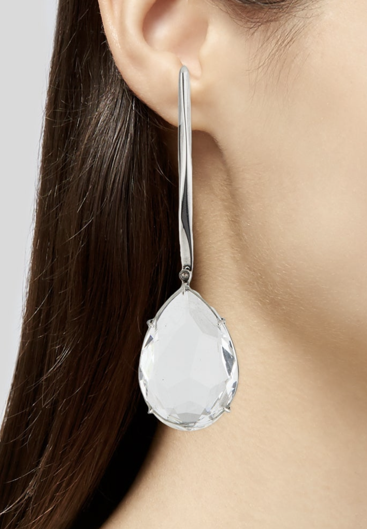 Alexander McQueen Silver Bar Big Tear Drop Crystal Dangle Earrings