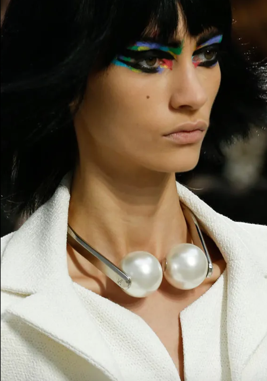 Chanel Silver Oversized Double Pearl Necklace Choker Runway Spring 2014