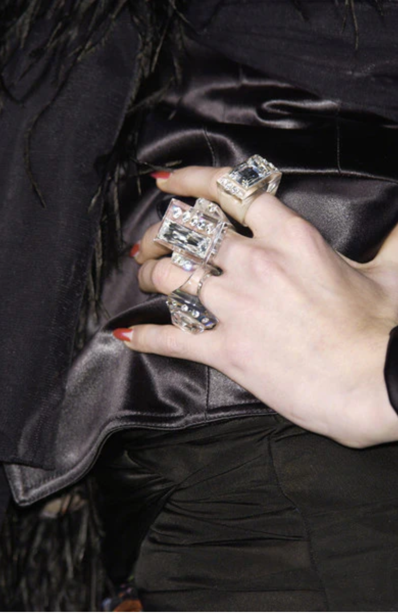 Christian Dior Clear Lucite Acrylic Square Crystal Ring Runway Spring Summer 2004