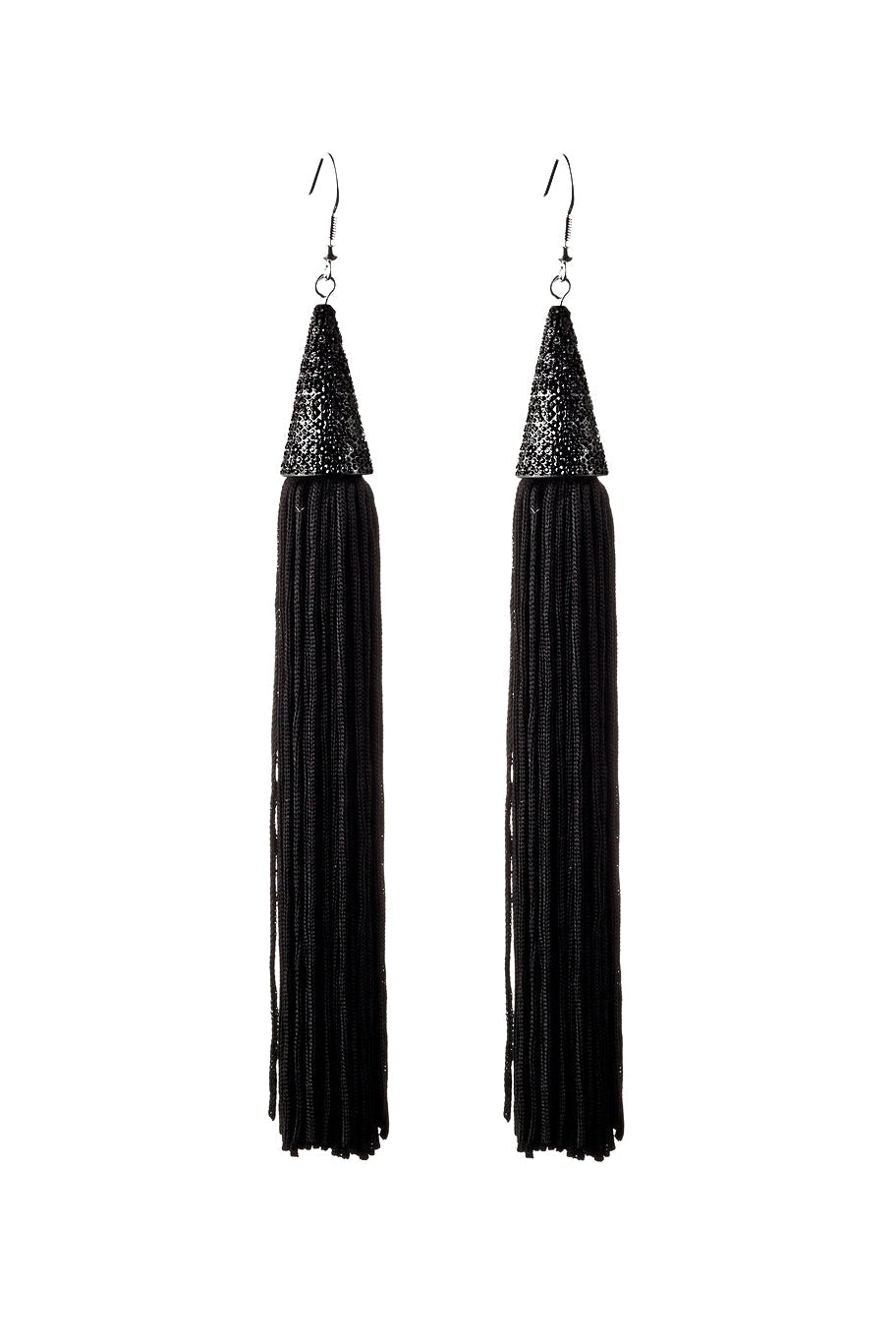 Eddie Borgo Black Fringe Tassel Earrings Pavéd in Jet Black Onyx
