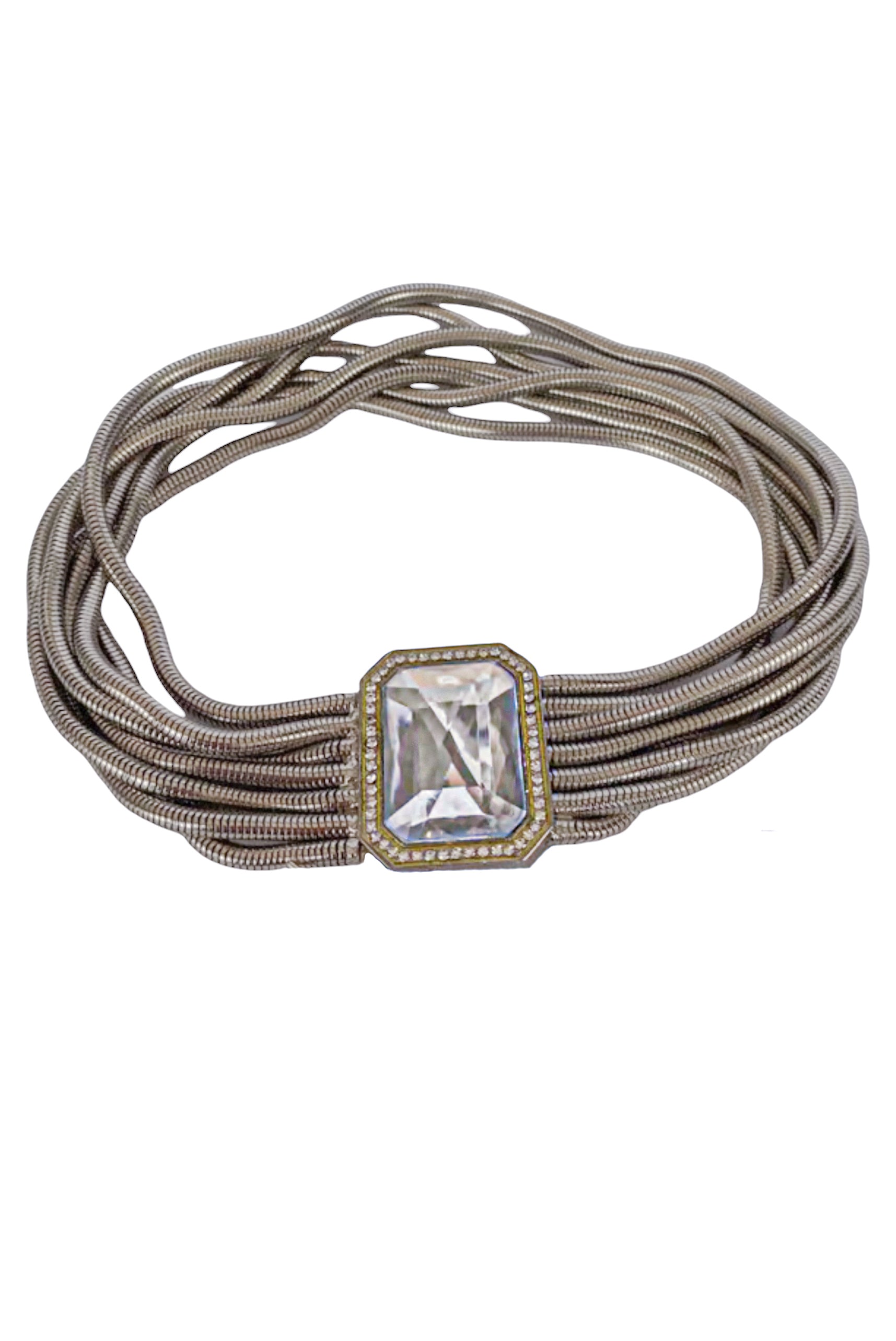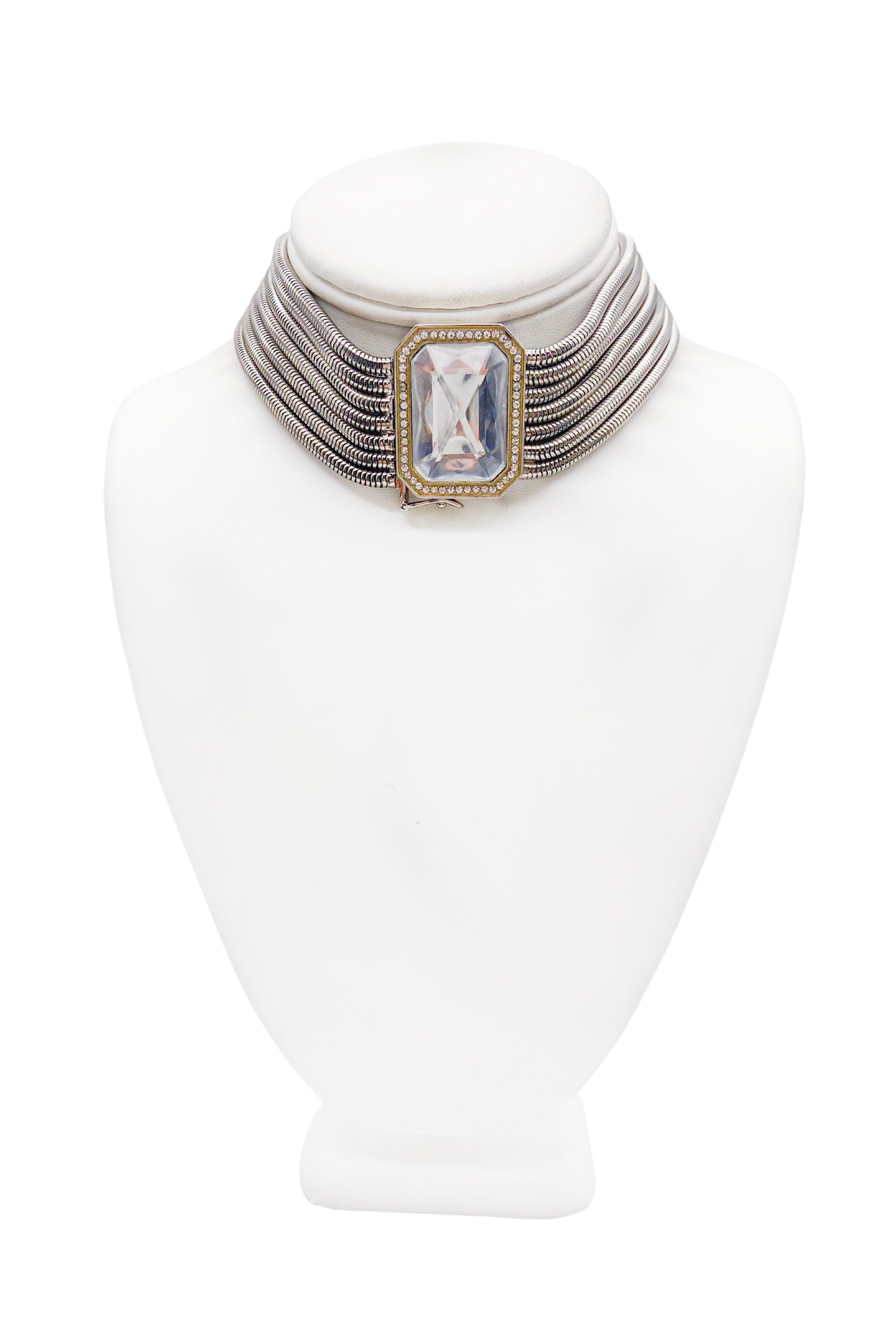 Gianfranco Ferre Silver Metallic Huge Square Diamond Choker Necklace
