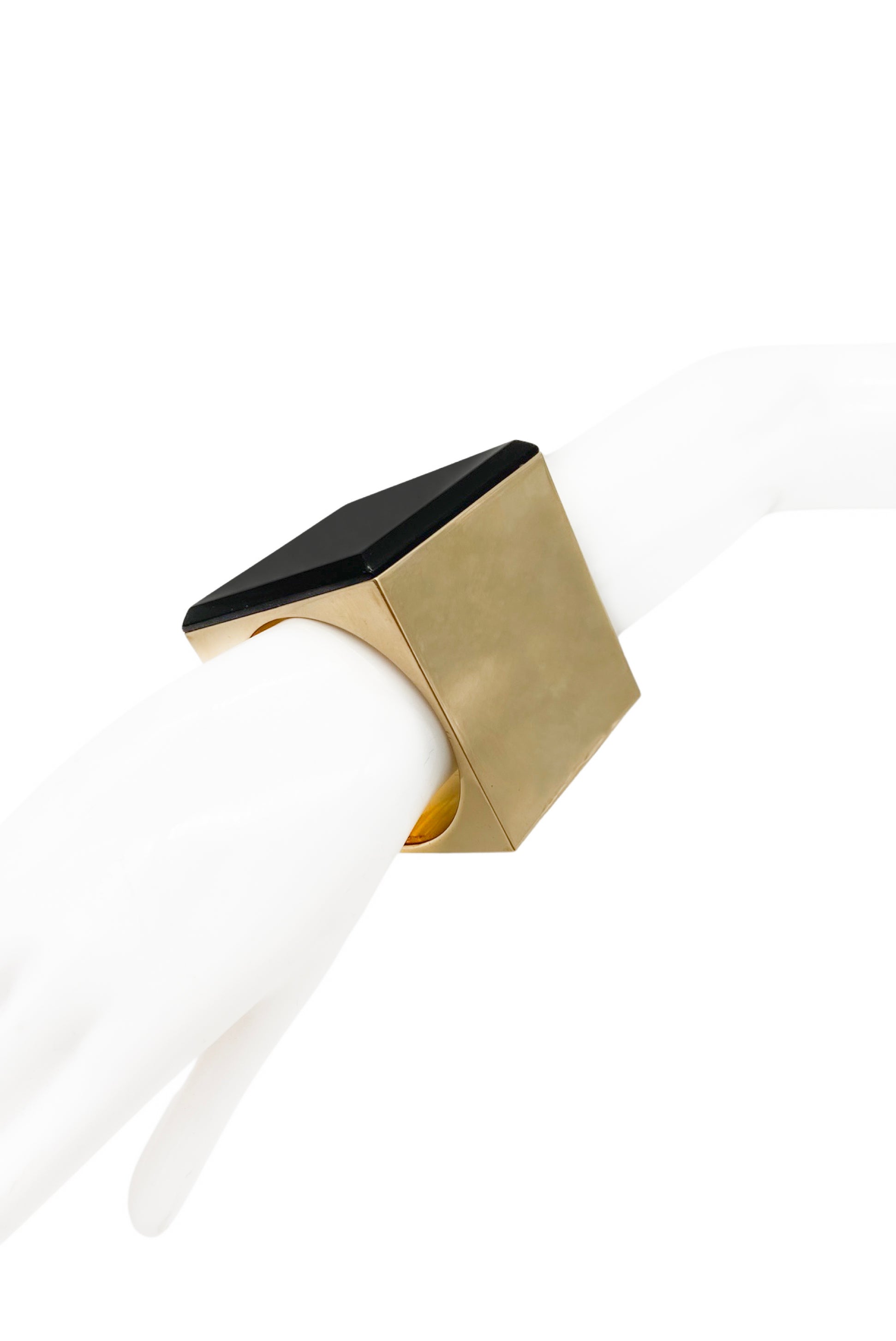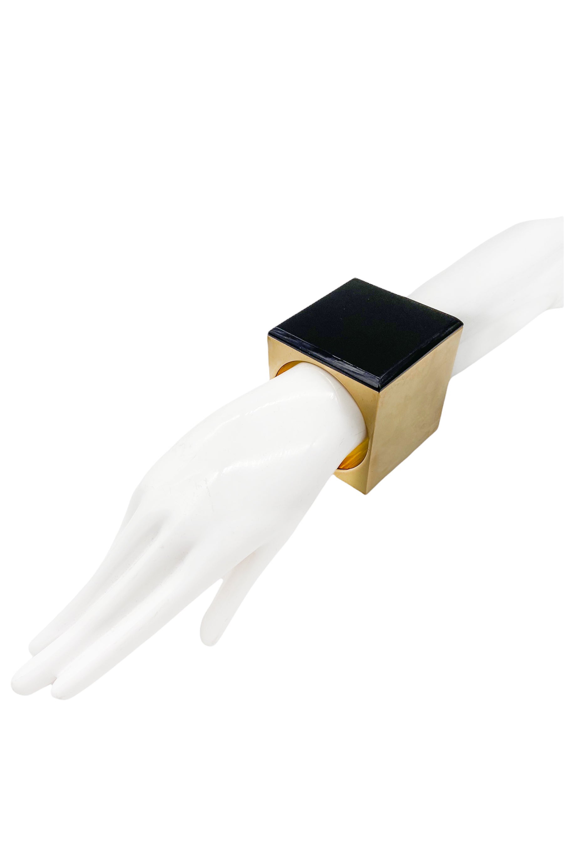 Givenchy Gold Metal & Black Enamel Square Oversized Bracelet