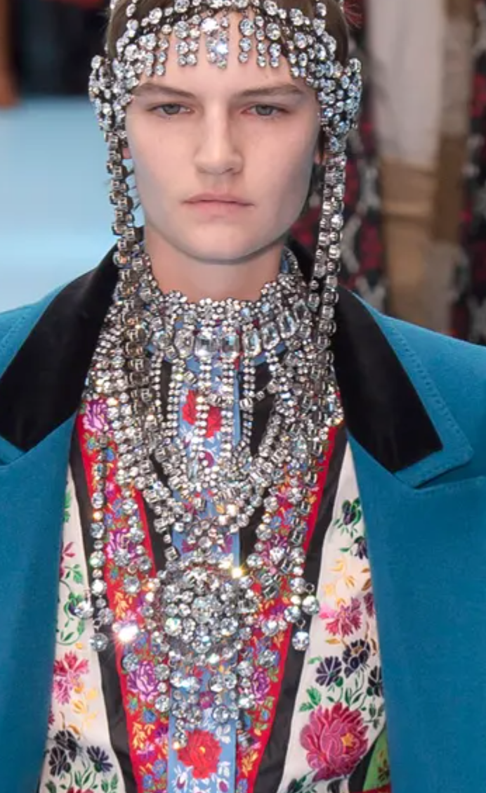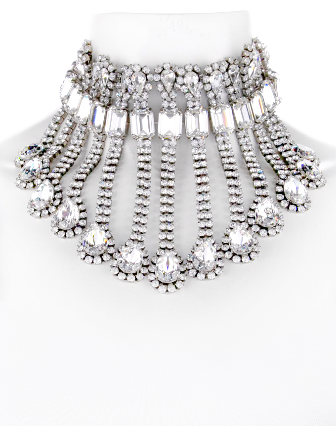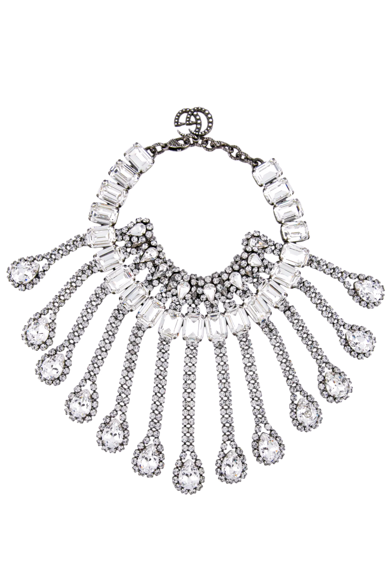 Gucci Crystal Silver Showgirl Tear Drop Peacock Fringe Choker Necklace Runway Fall 2018