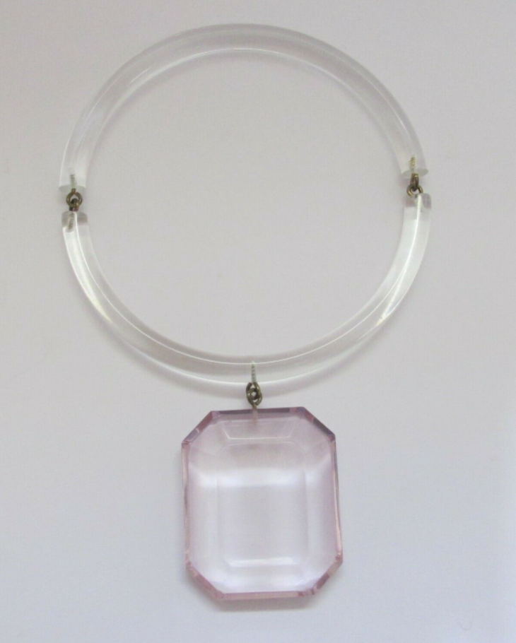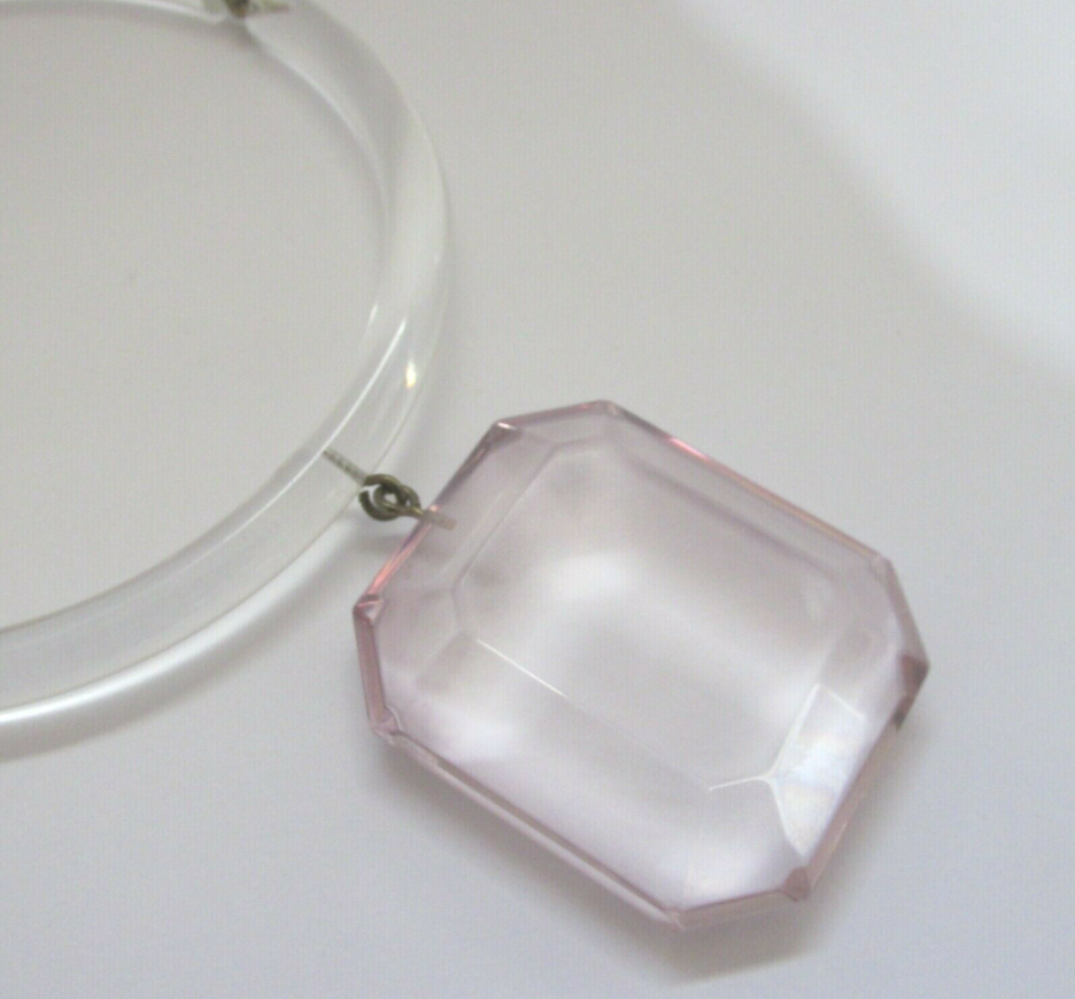 Judith Hendler Clear Lucite Resin Pink Oversized Diamond Necklace
