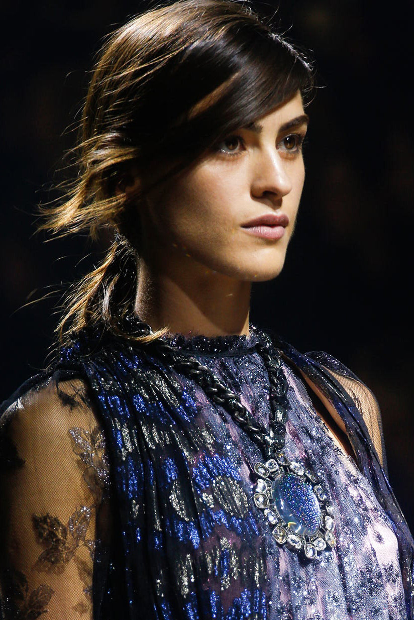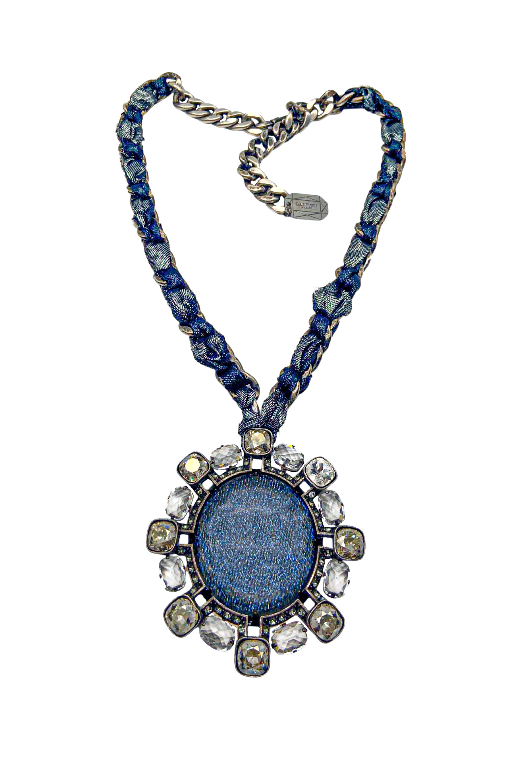 Lanvin Blue Sparkle Oversize Pendent Necklace on a Gunmetal Chain SS2014