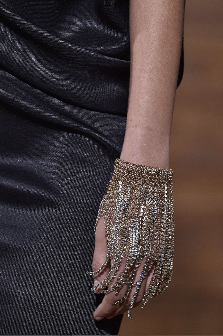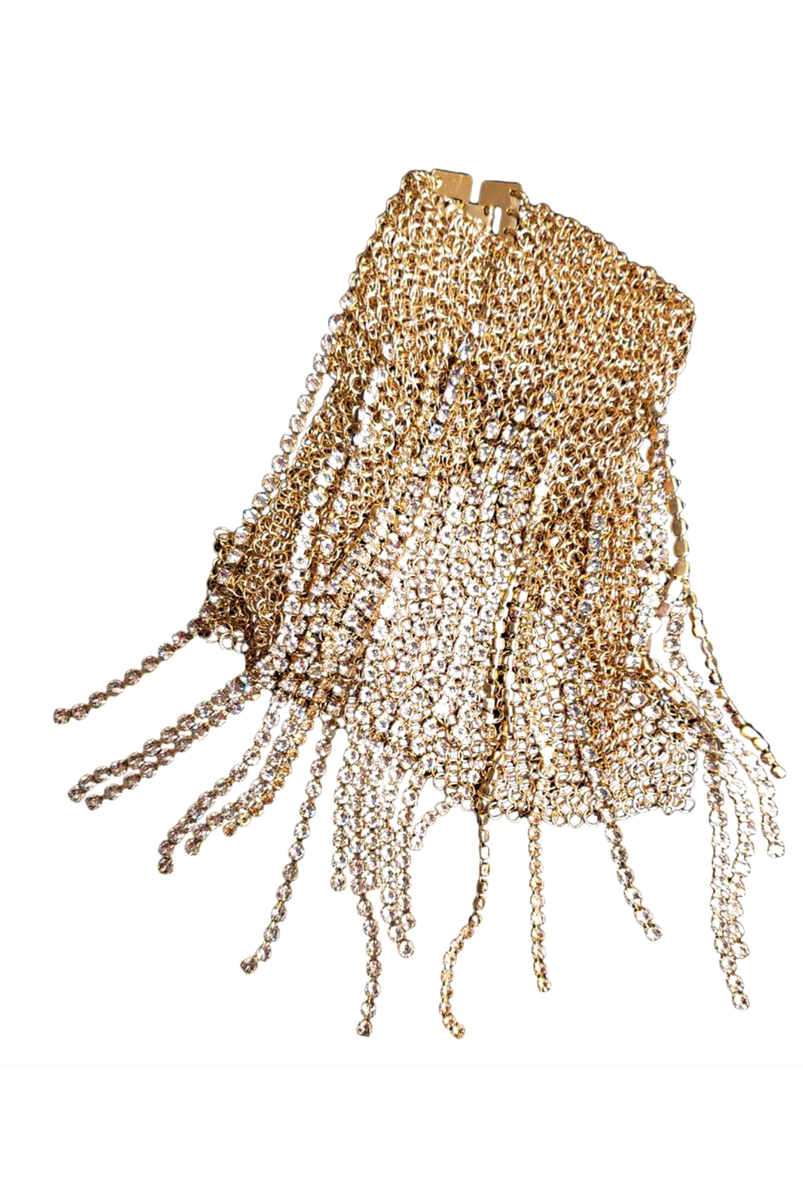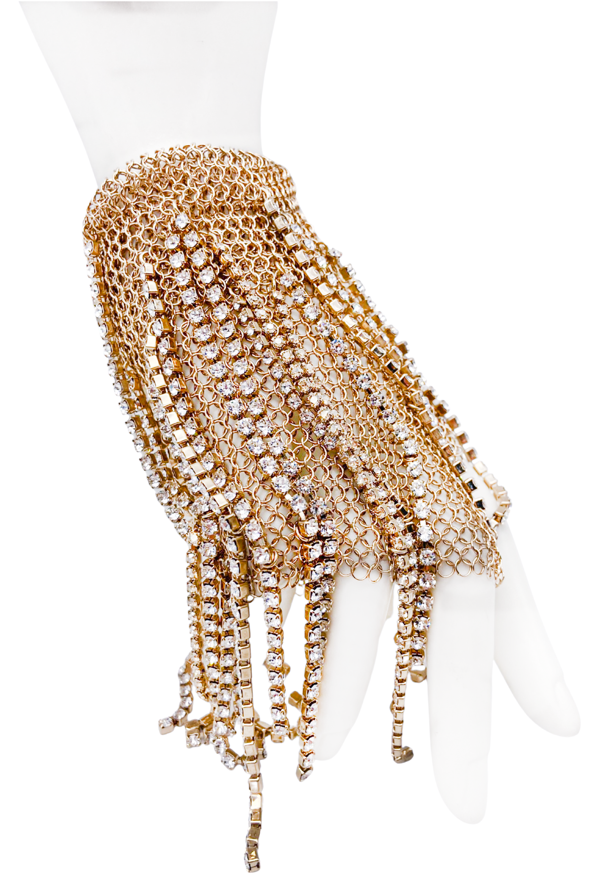Lanvin Gold Knit Chain Mesh Chainmail Crystal Fringe Glove Bracelet