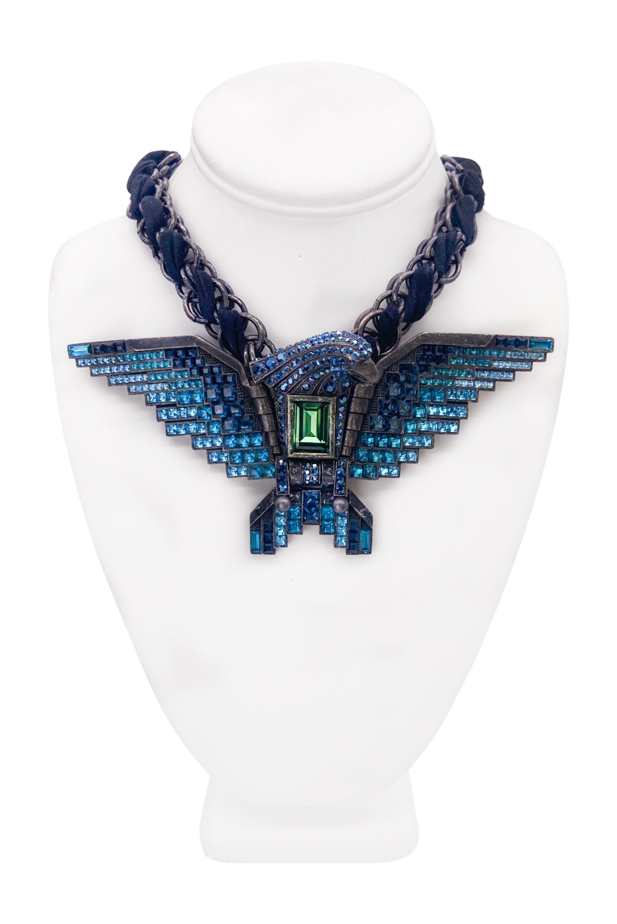 Lanvin Light Sapphire Blue Aquamarine Emerald Green Eagle Necklace Runway 2012