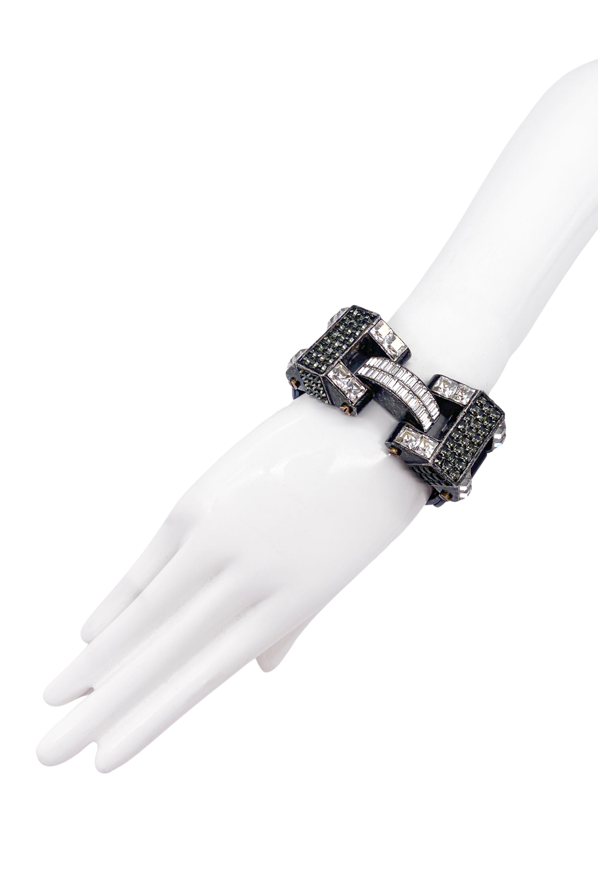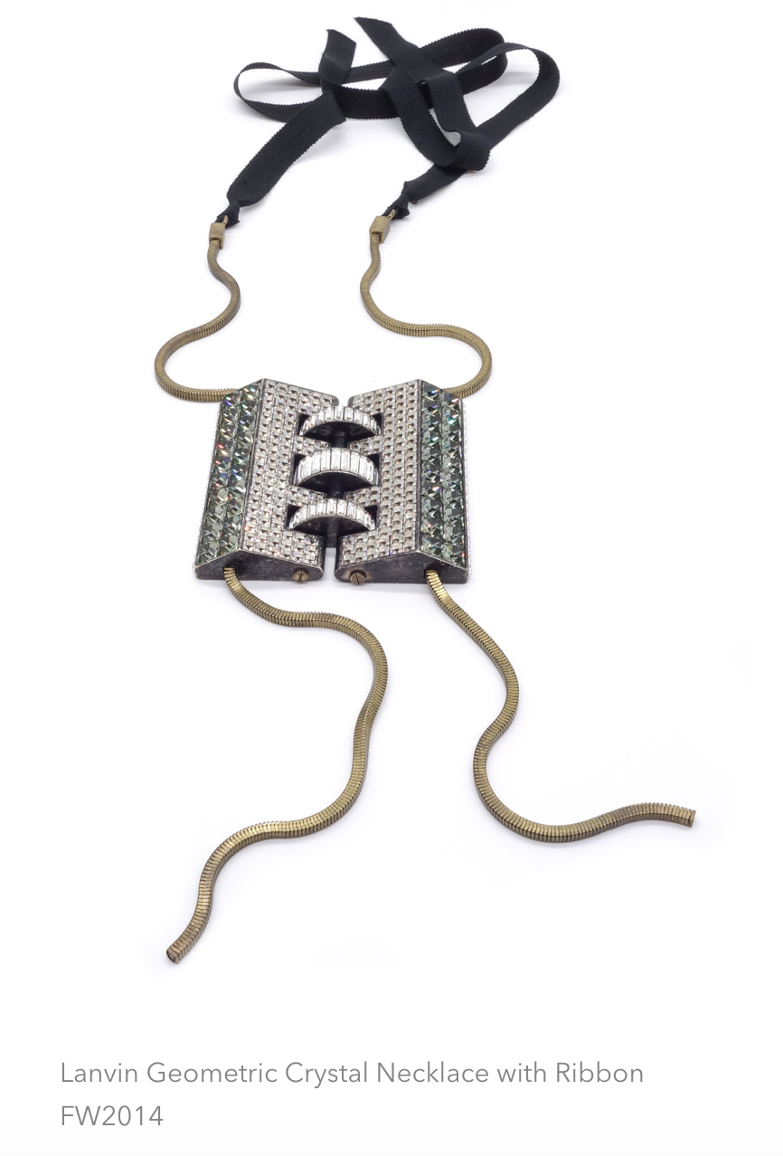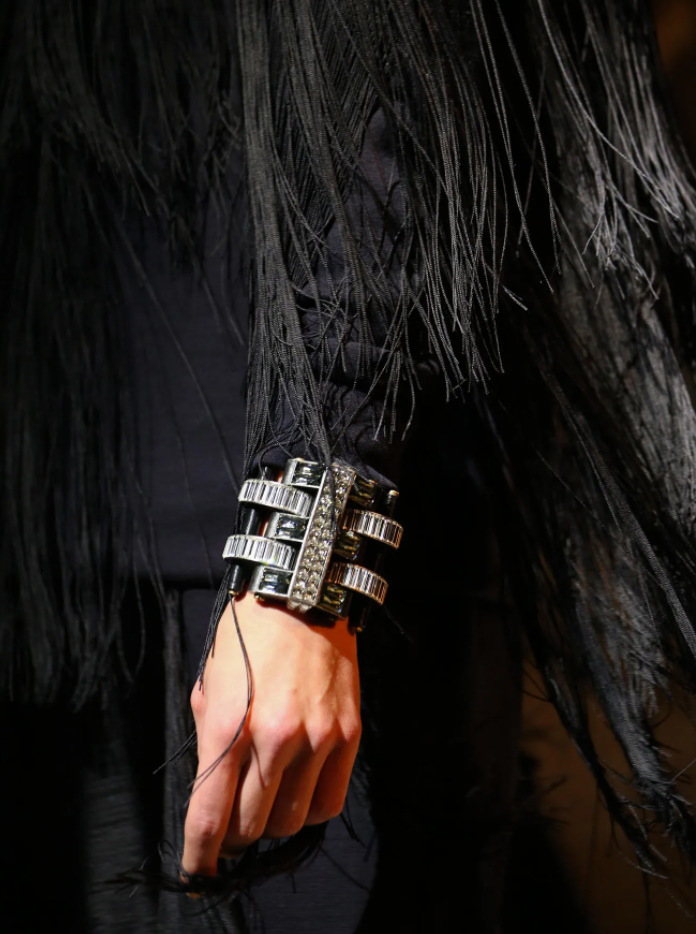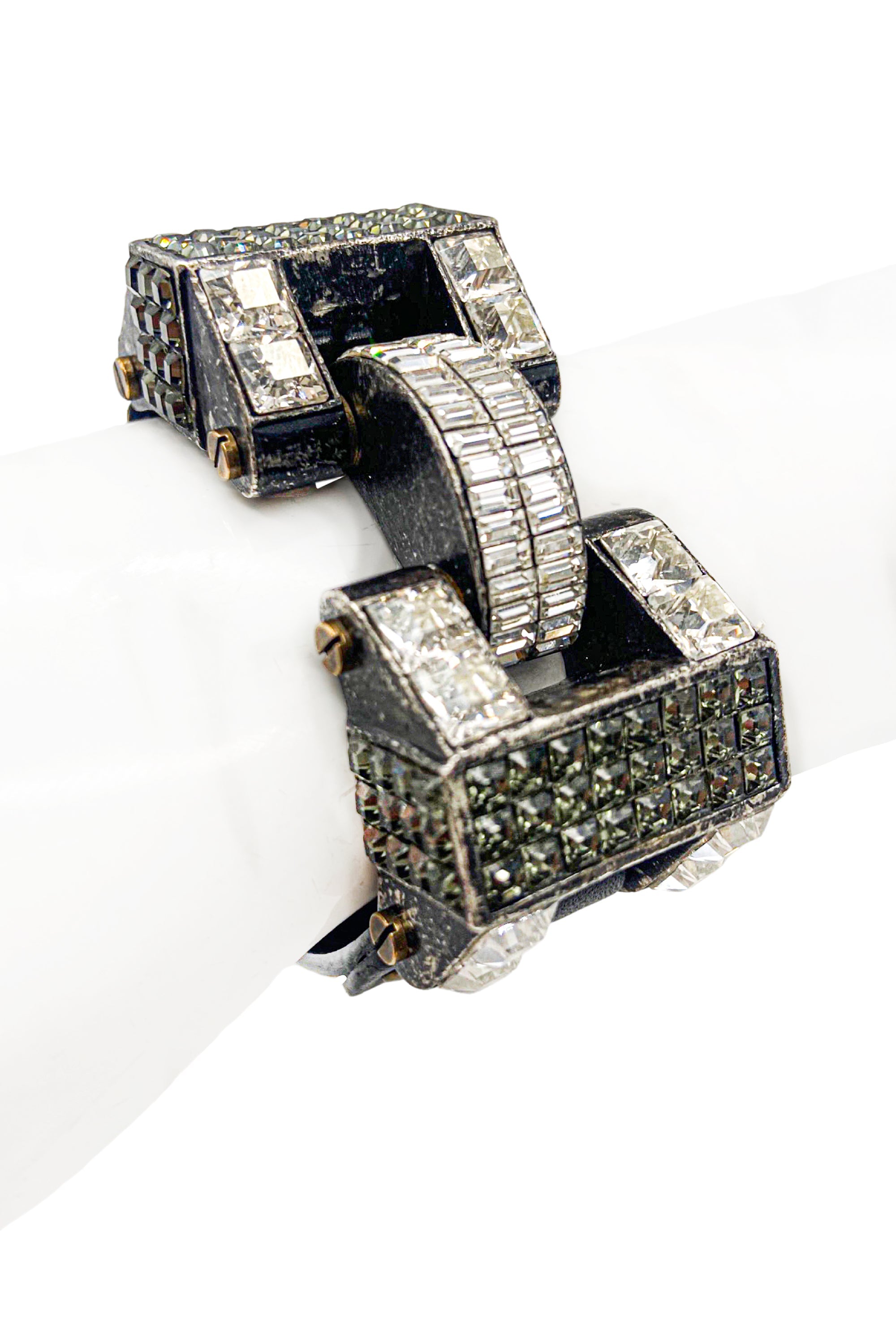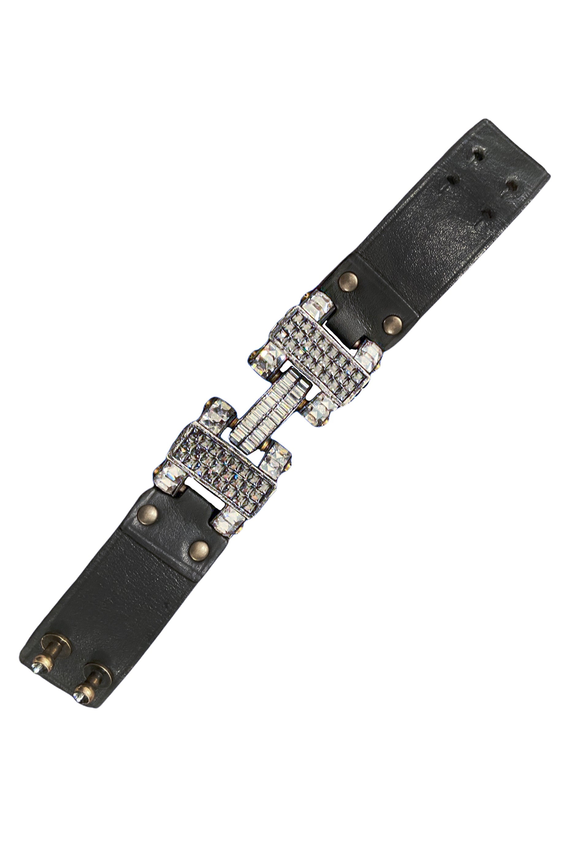 Lanvin Silver Grey Geometric Crystal Leather Cuff Bracelet Fall 2014 Runway