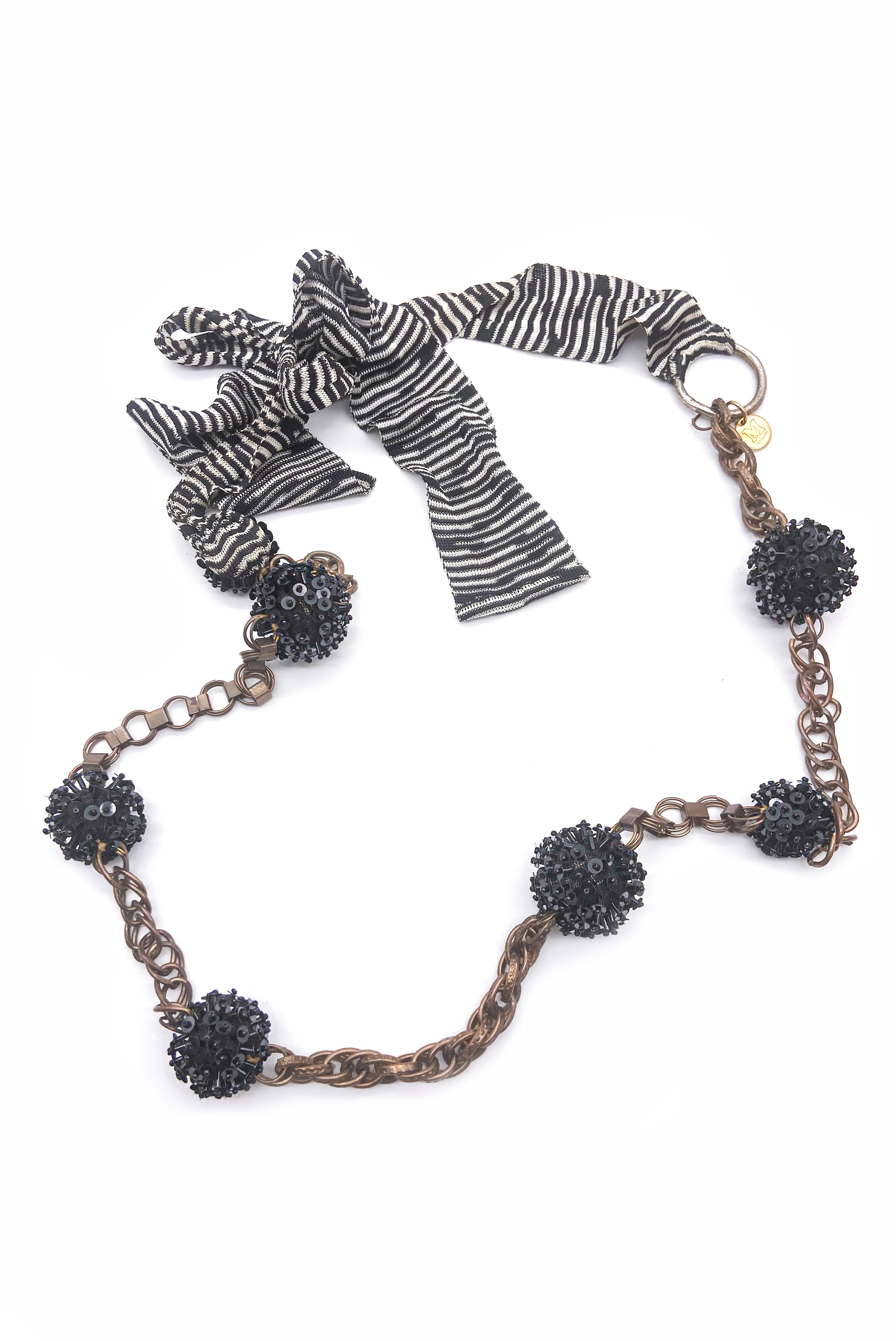 Missoni Black & White Fabric Black Sequin Sputnik Ball Necklace