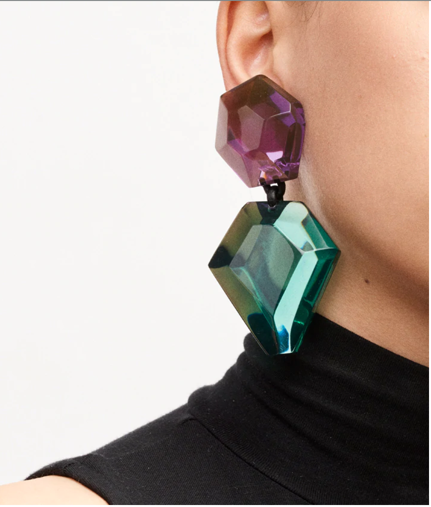 Monies Emerald Green Amethyst Purple Lucite Resin Chunky Diamond Earrings