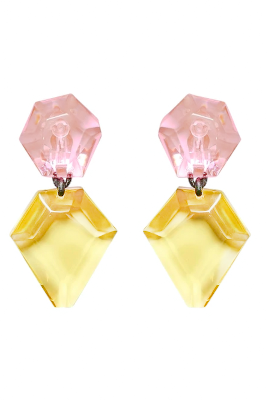 Monies Pink Canary Yellow Lucite Resin Chunky Diamond Earrings