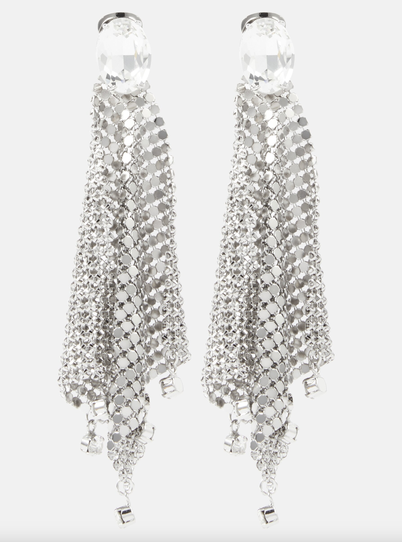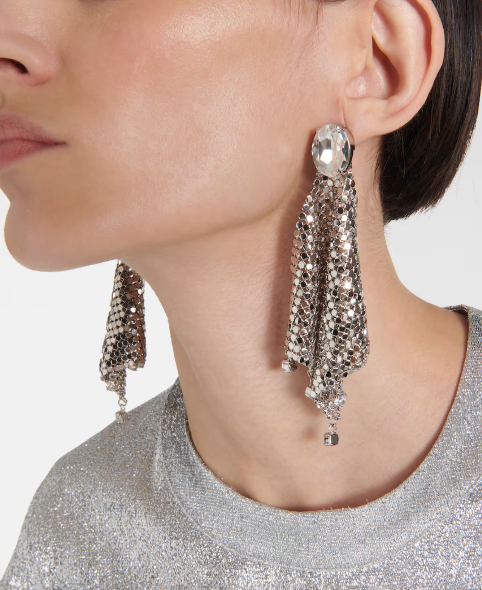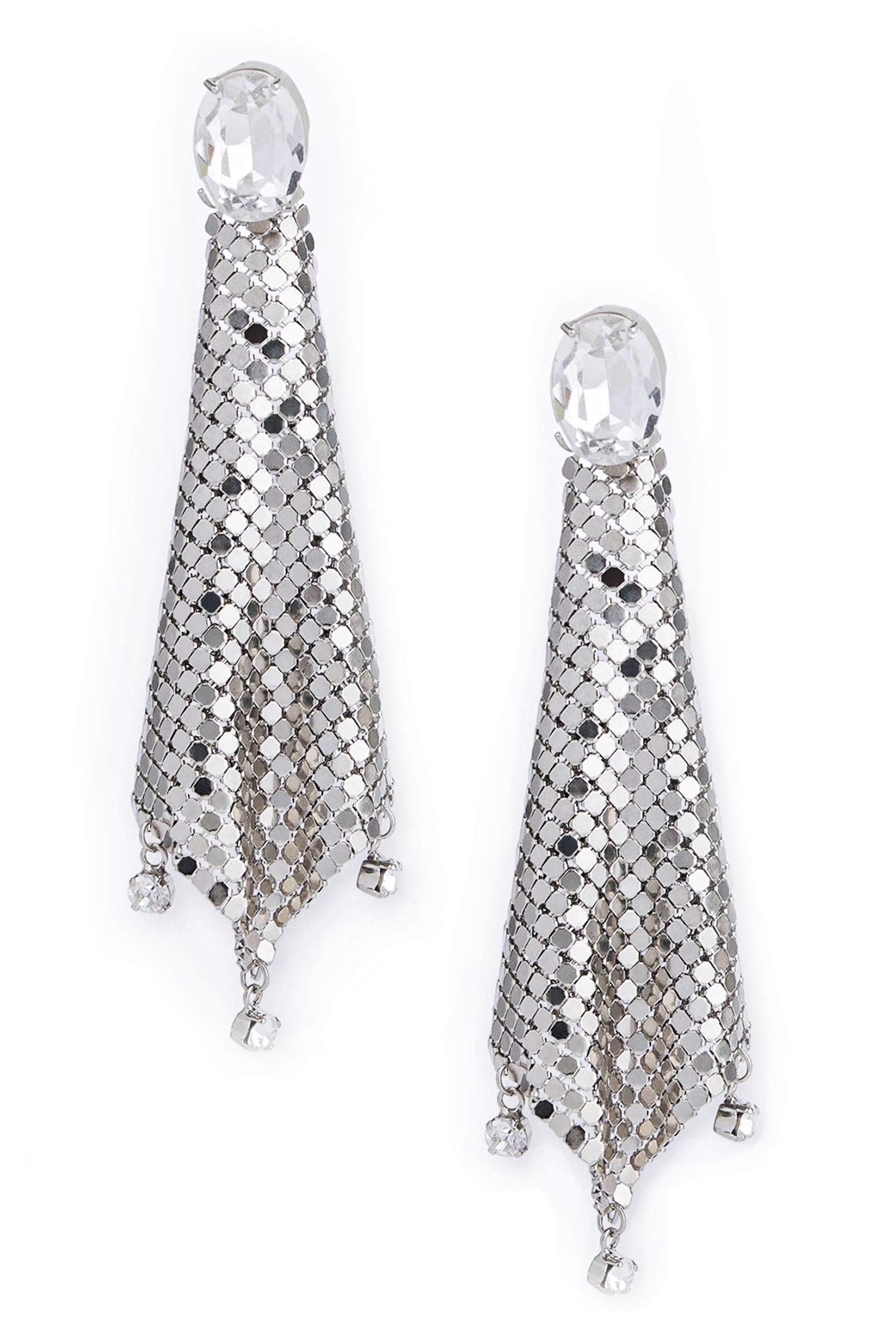 Paco Rabanne Silver Chainmesh Crystal Disco Earrings