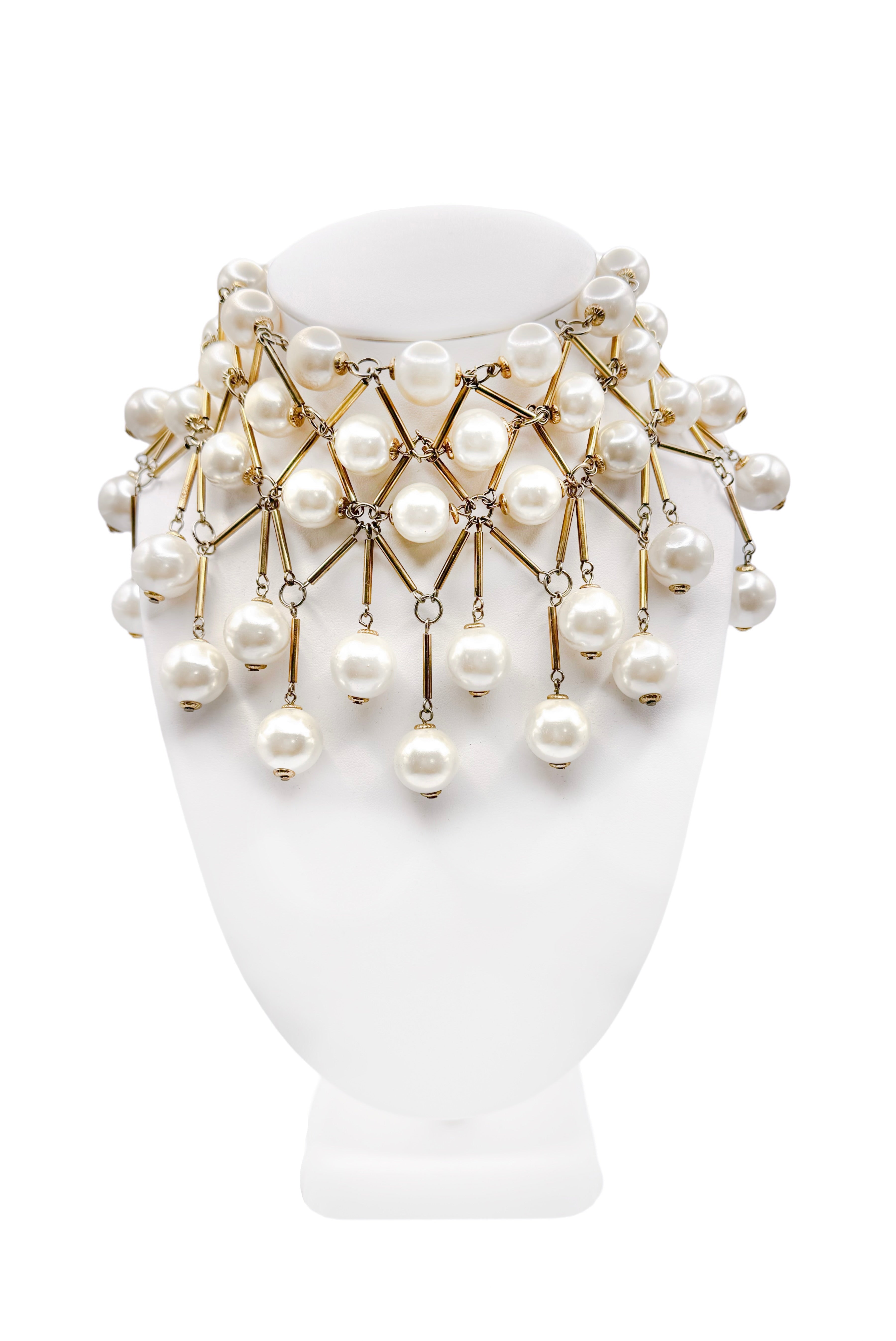 Poggi Paris Gold Geometric Pearl Drop Choker Necklace
