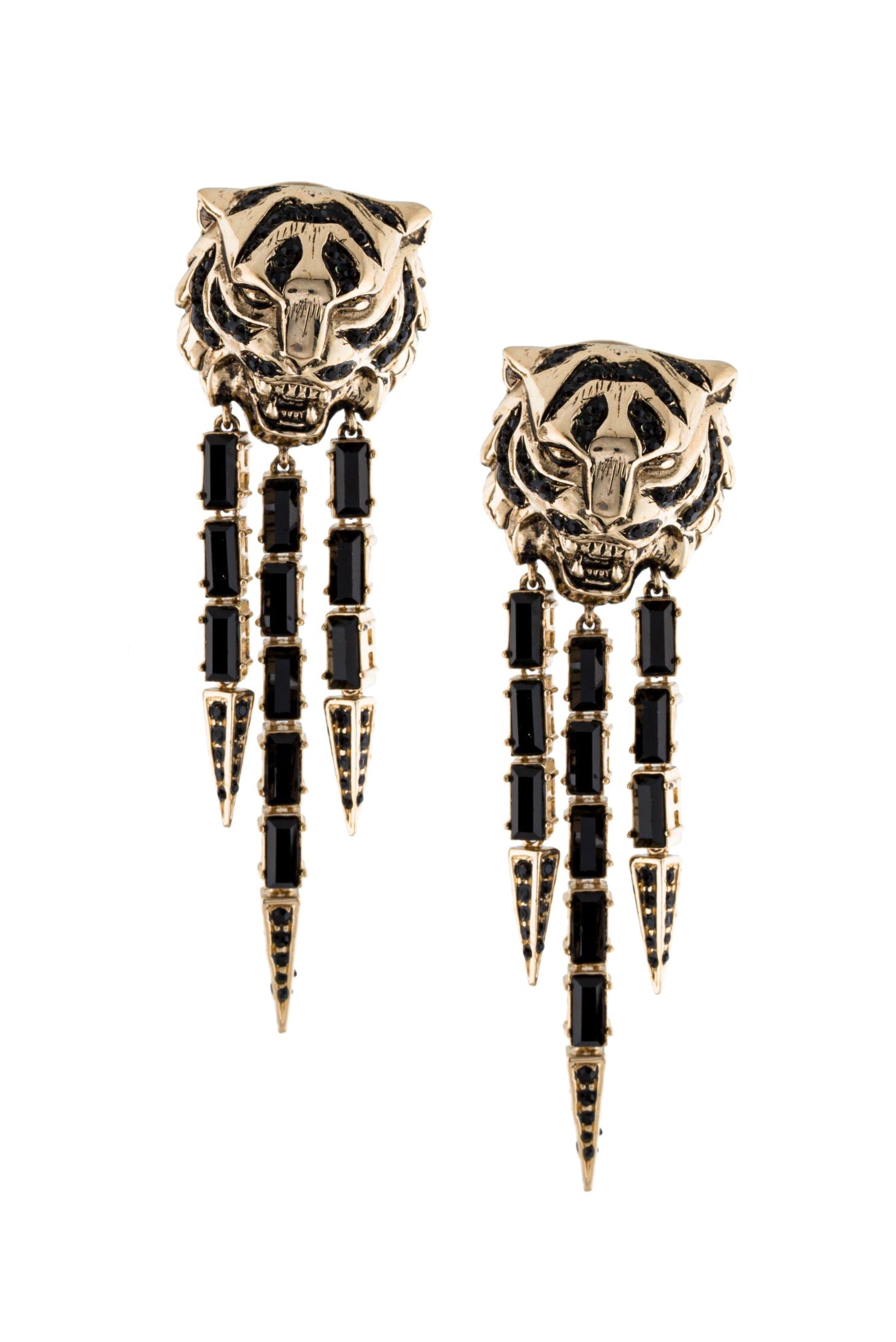Roberto Cavalli Black Tiger Gem Stone Fringe Earrings
