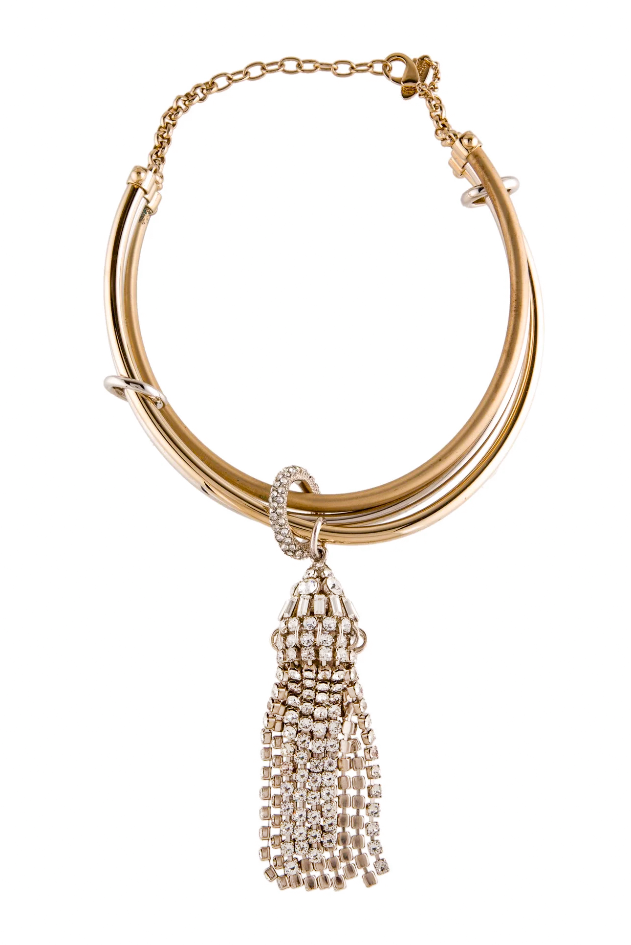 Roberto Cavalli Gold Triple Ring Choker Necklace with Crystal Tassel