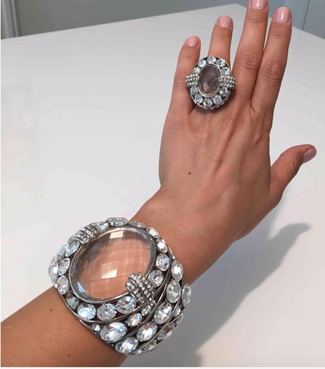 Roberto Cavalli Silver Crystal Oversized Bracelet