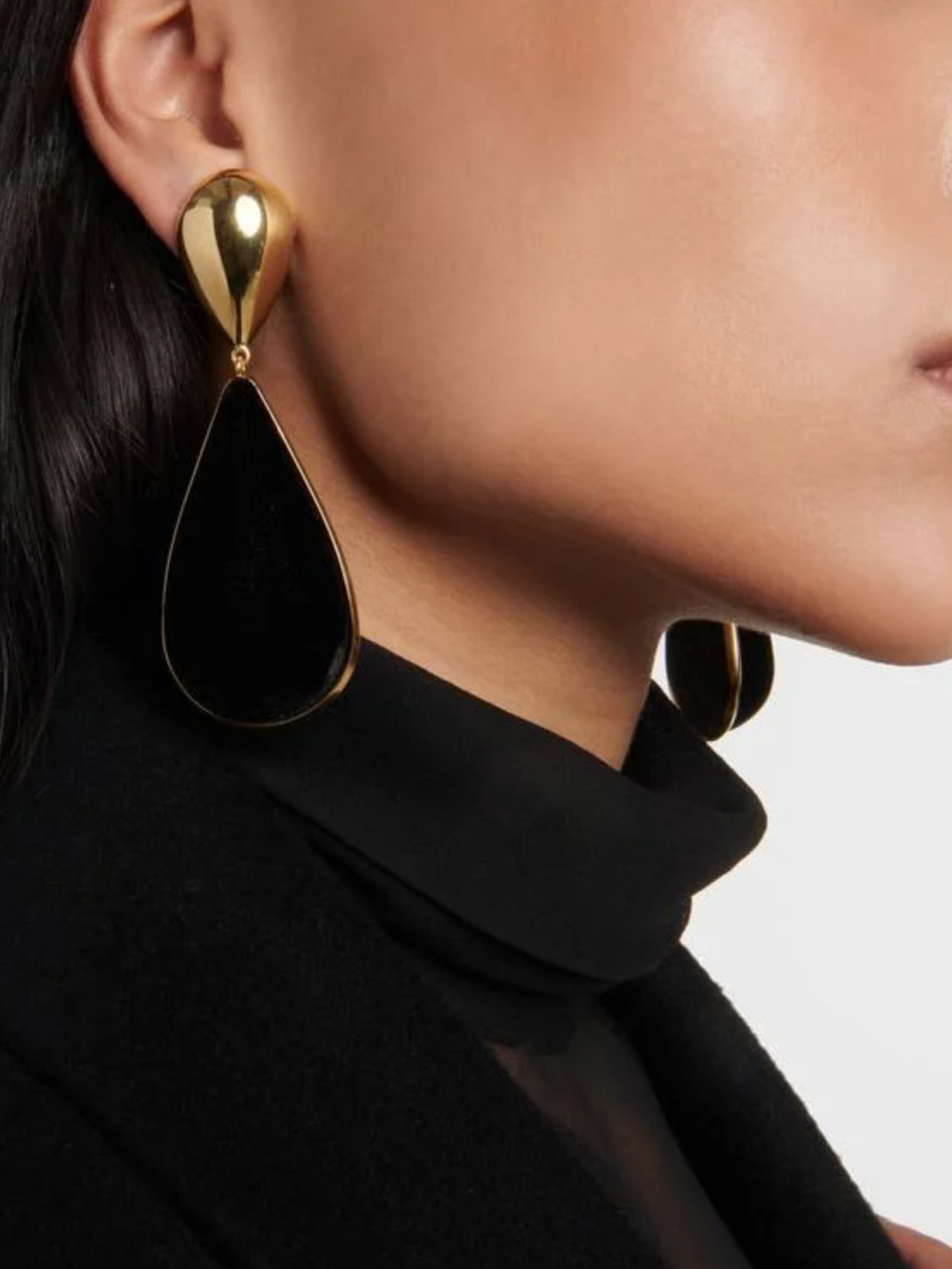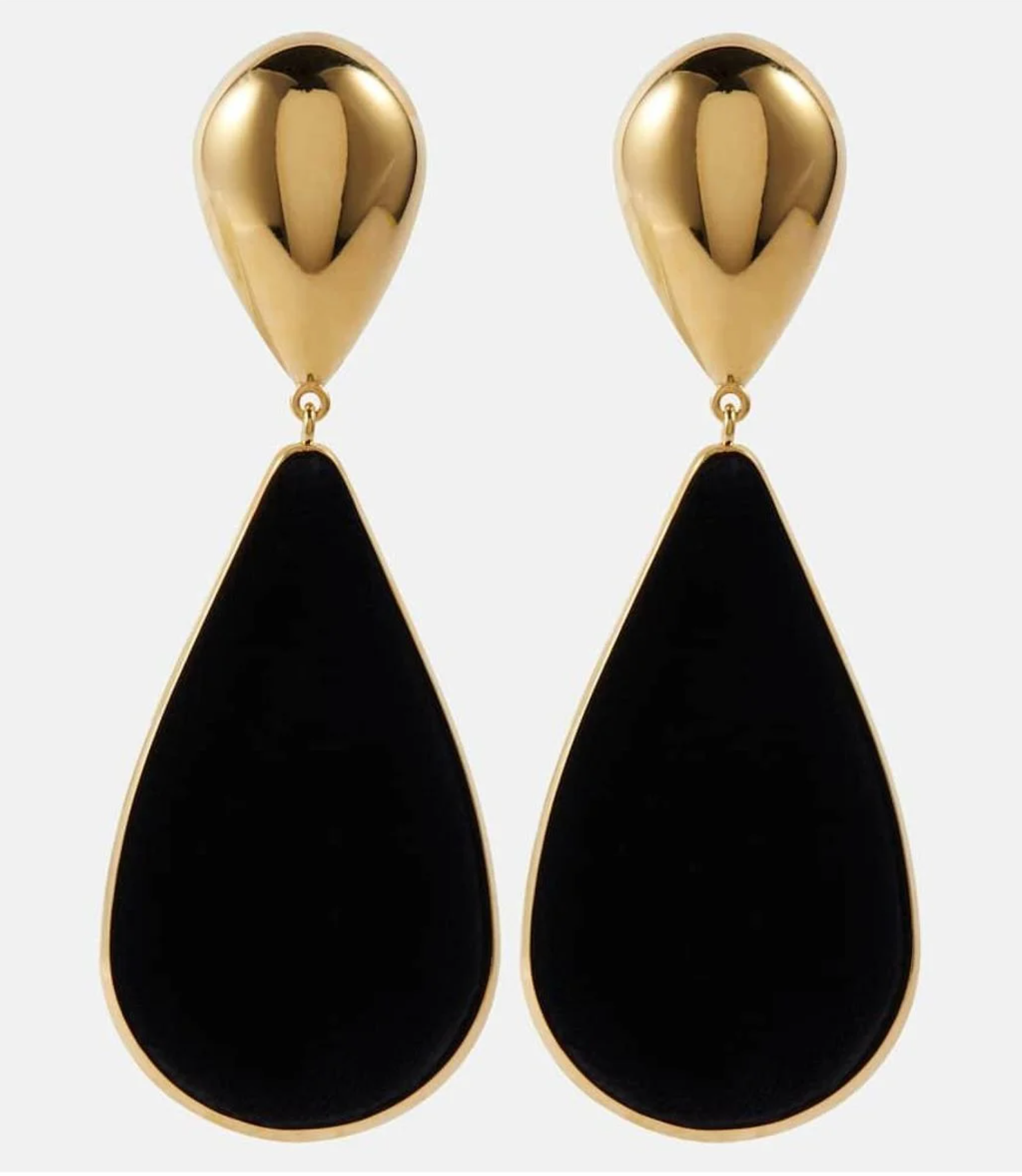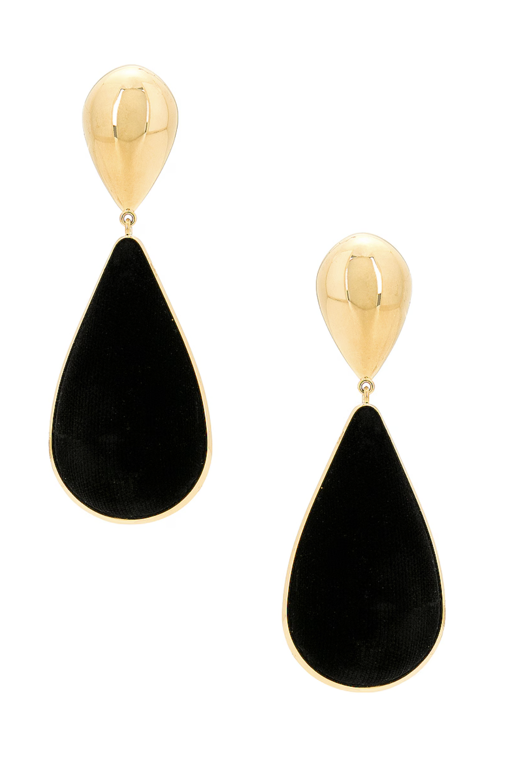 Saint Laurent Black Gold Tear Drop Hour Glass Velvet Earrings