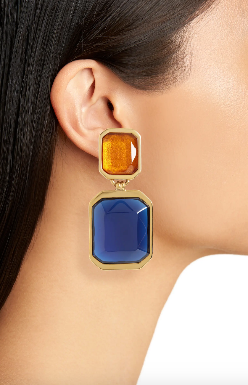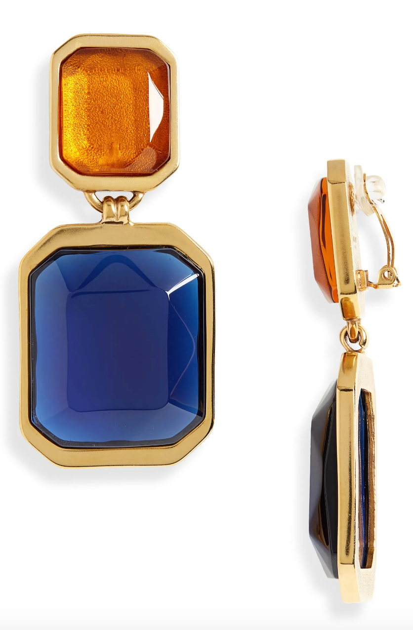 Saint Laurent Gold Blue Sapphire and Amber Orange Lucite Earrings Runway Spring 2022