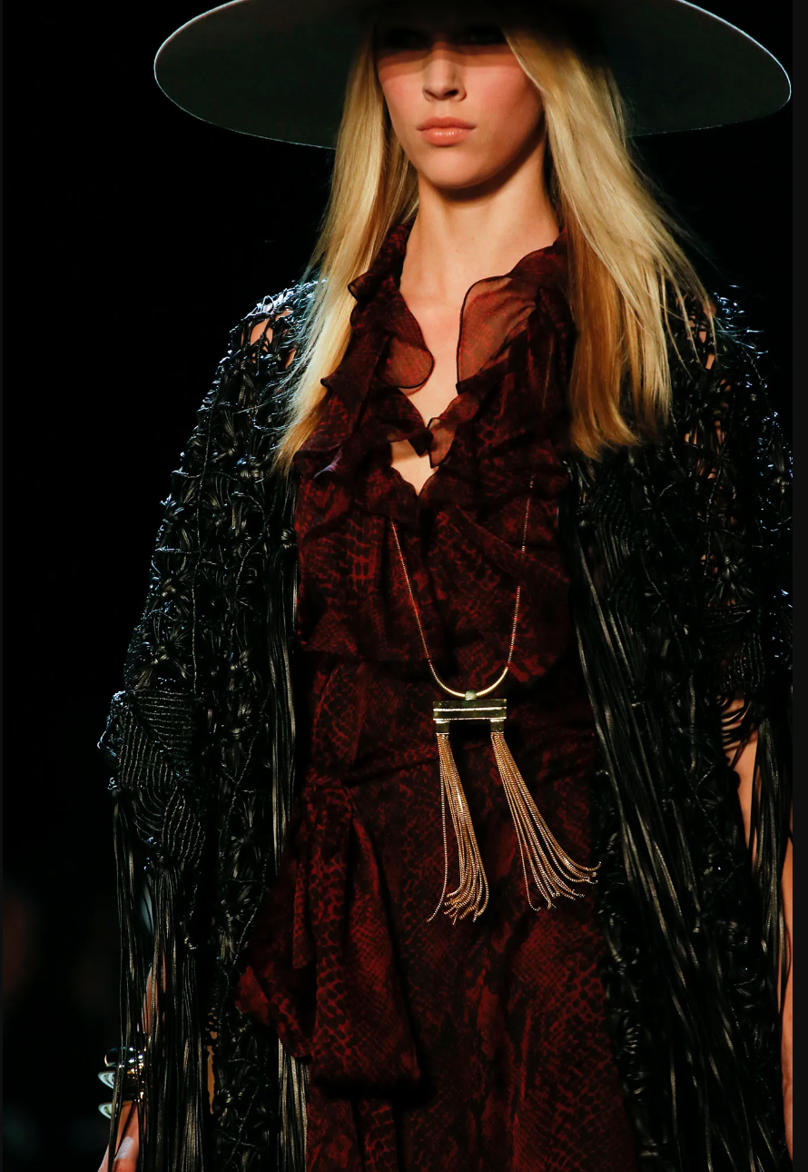 Saint Laurent by Hedi Slimane Gold Double Tassel Snake Necklace Runway Debut Collection Spring 2013