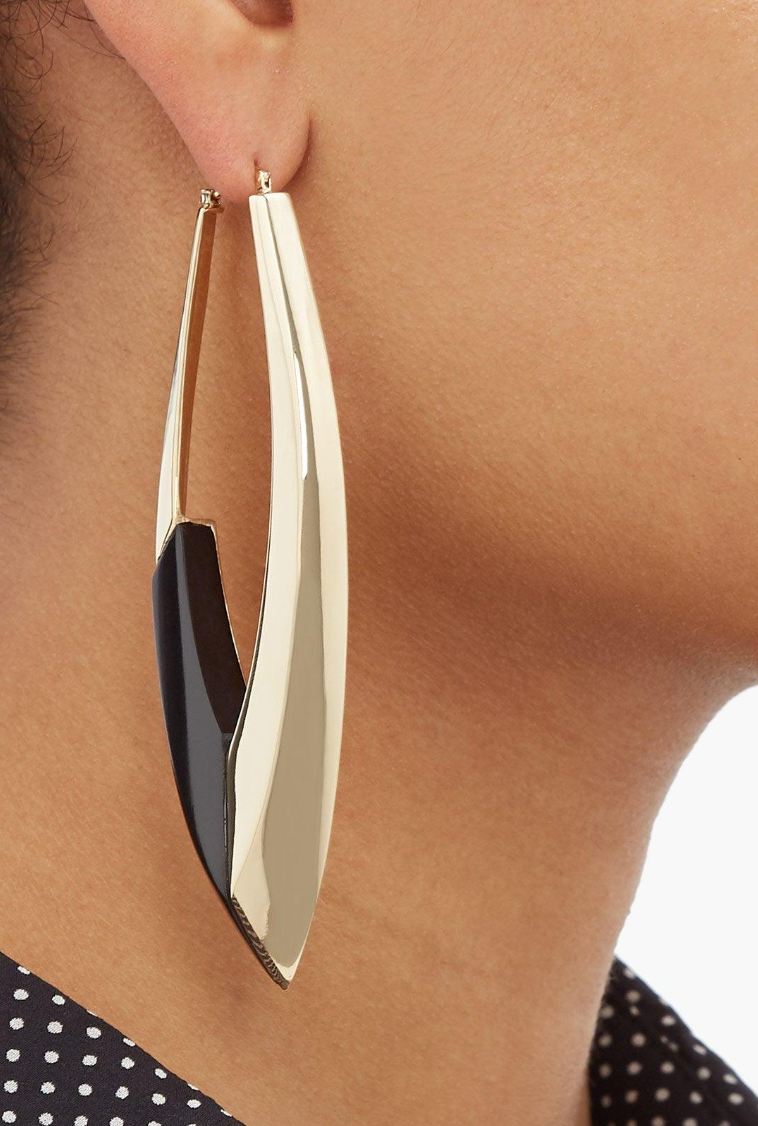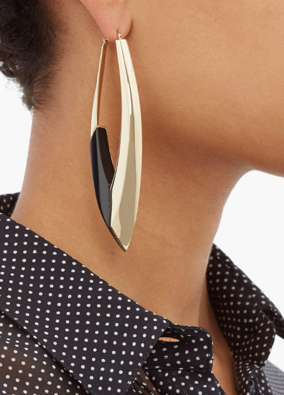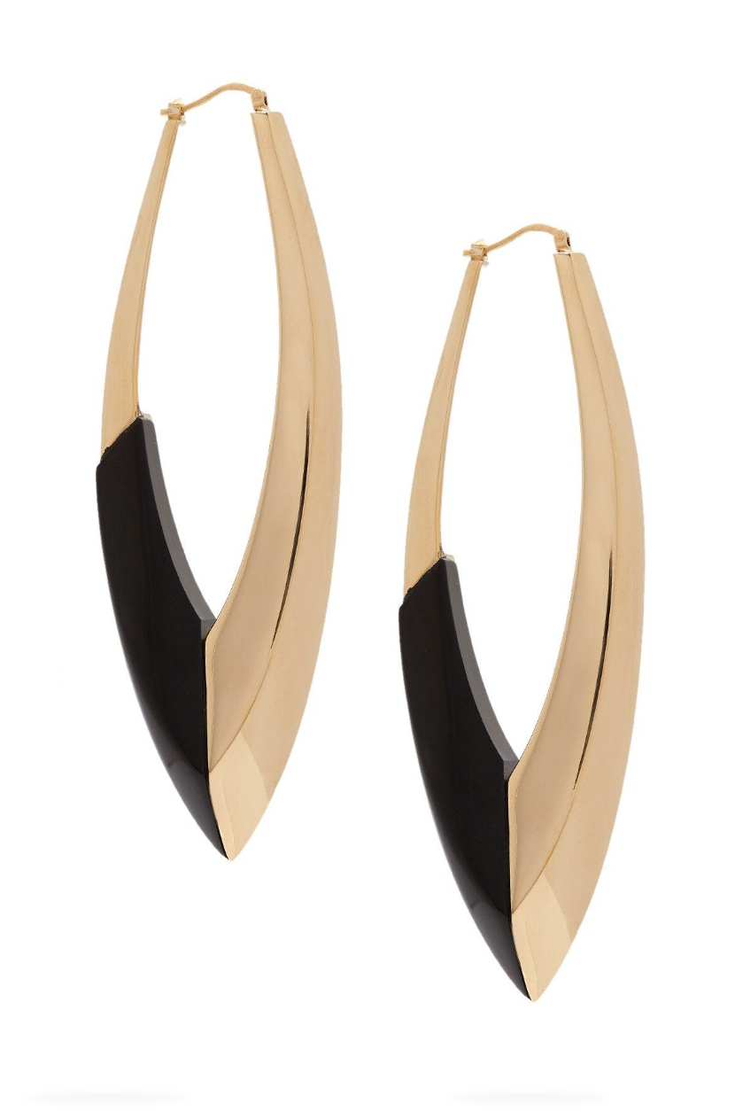 Saint Laurent Gold Black Sculptural Long Hoop Earrings