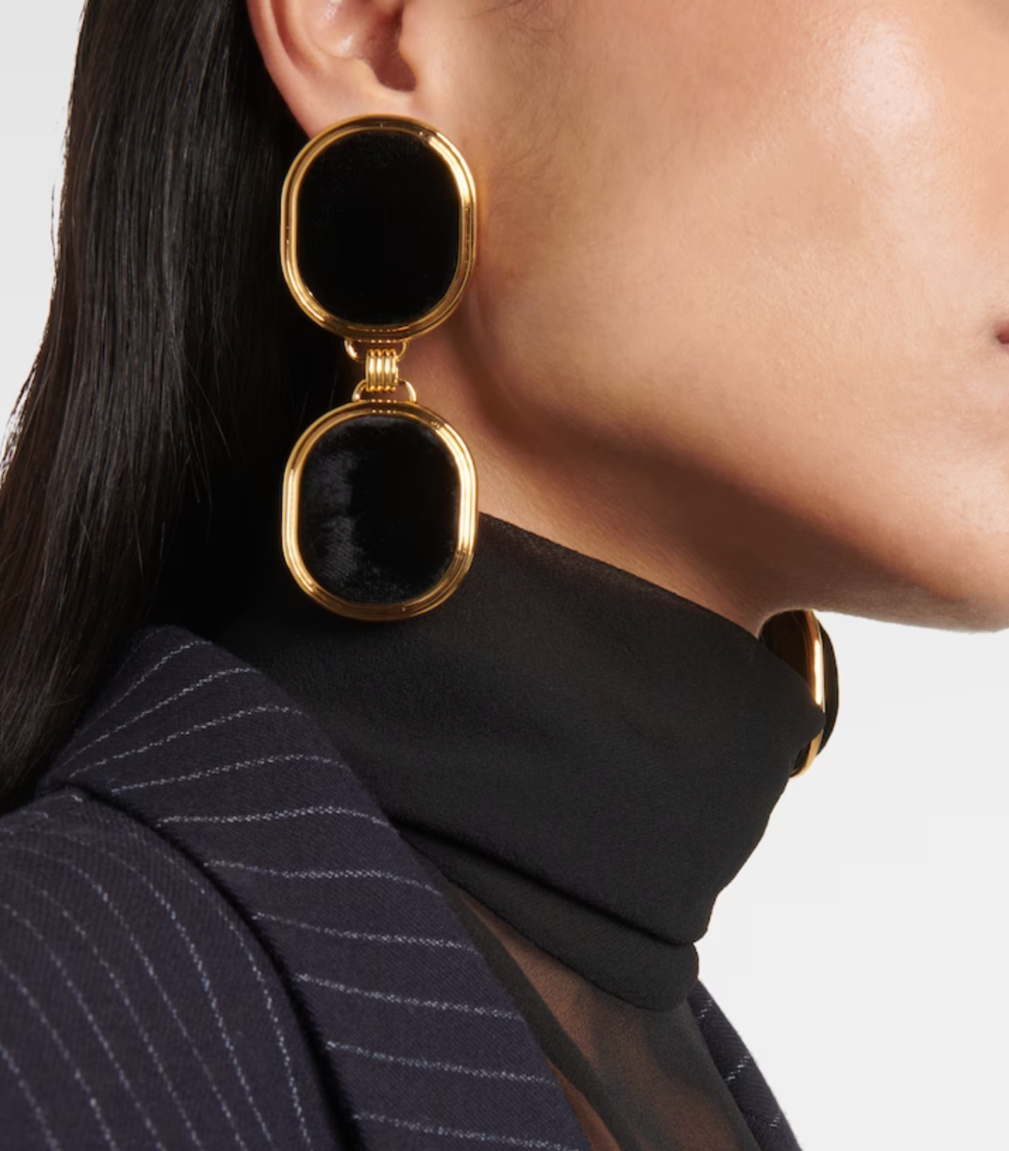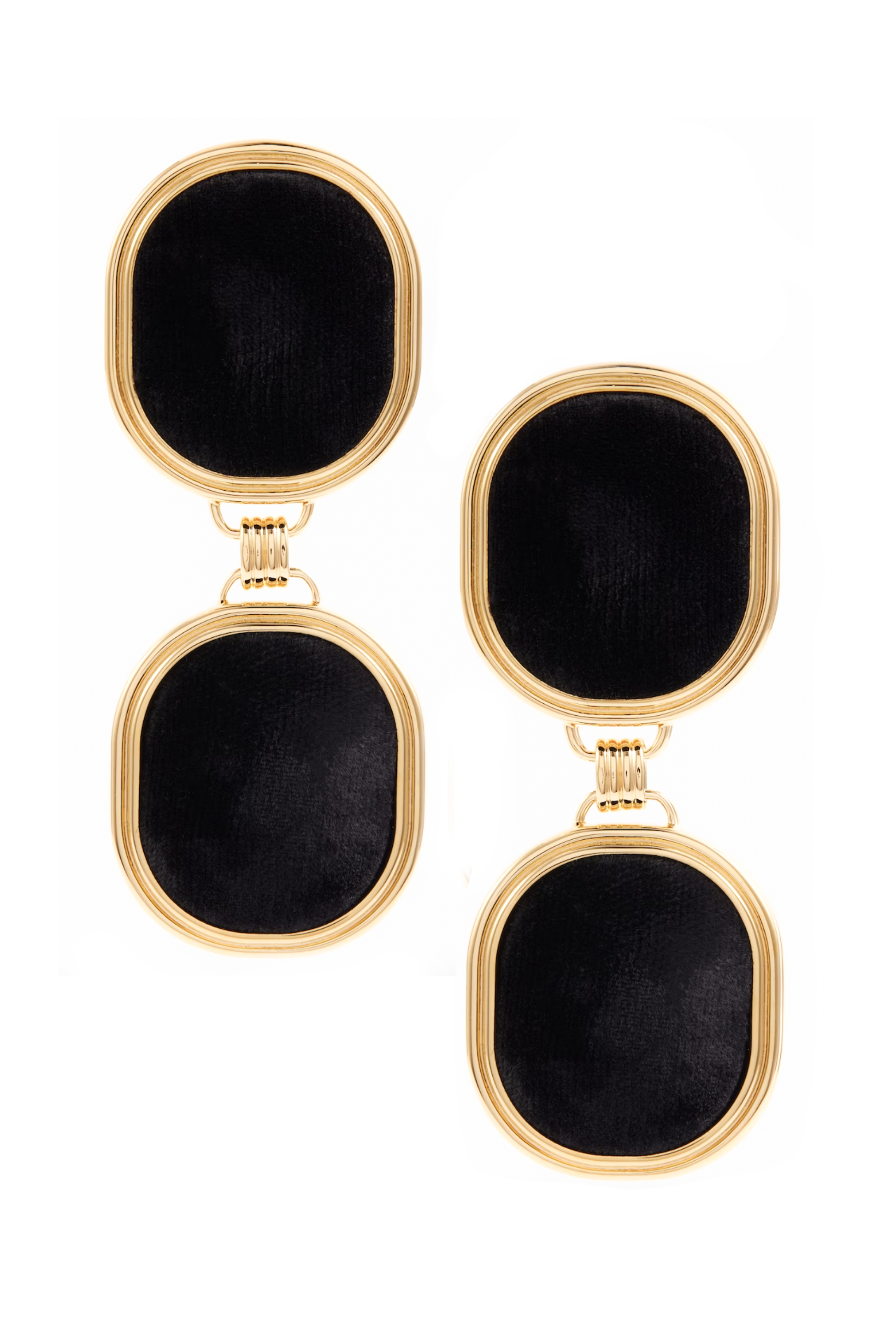 Saint Laurent Gold Black Velvet Oval Double Earrings