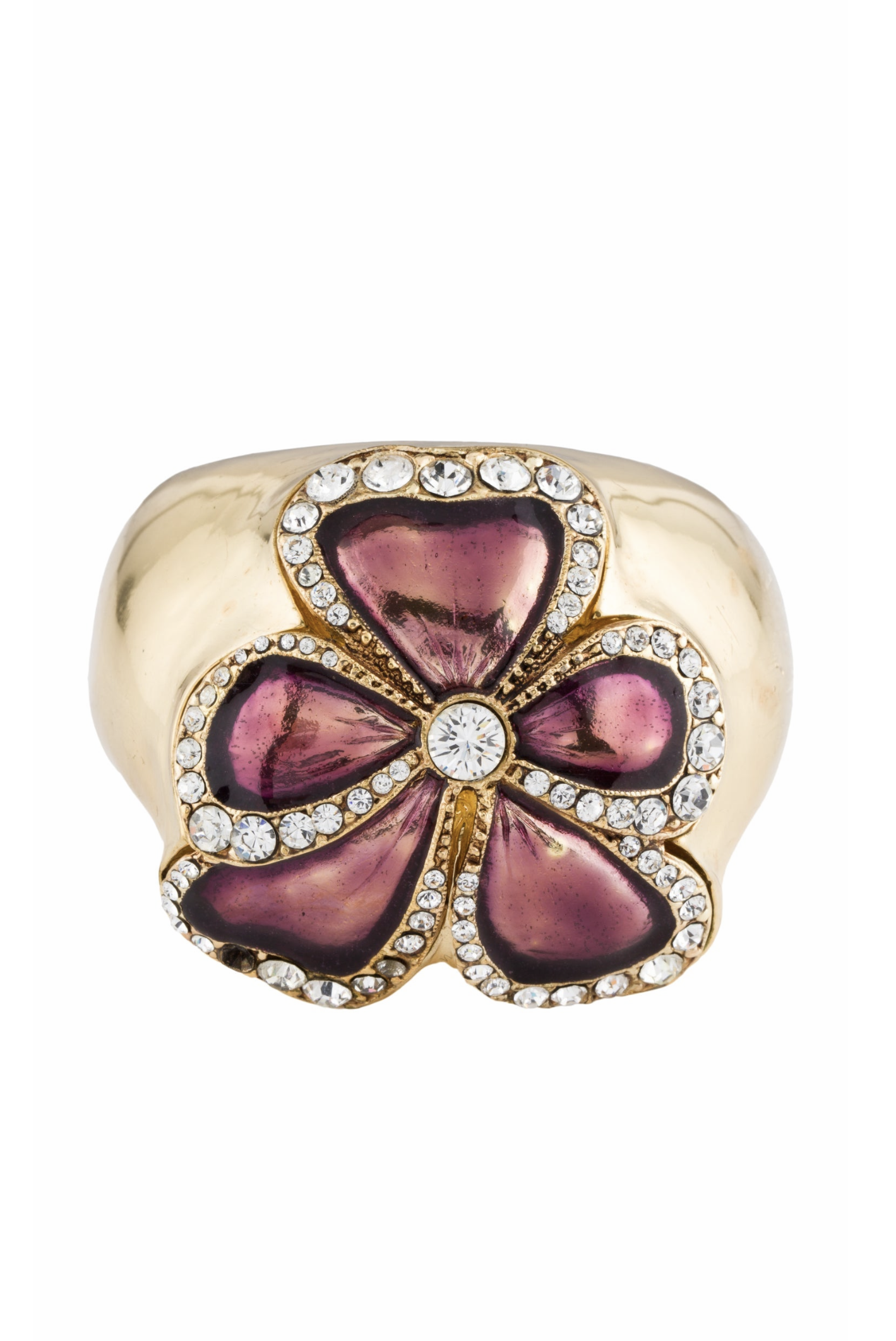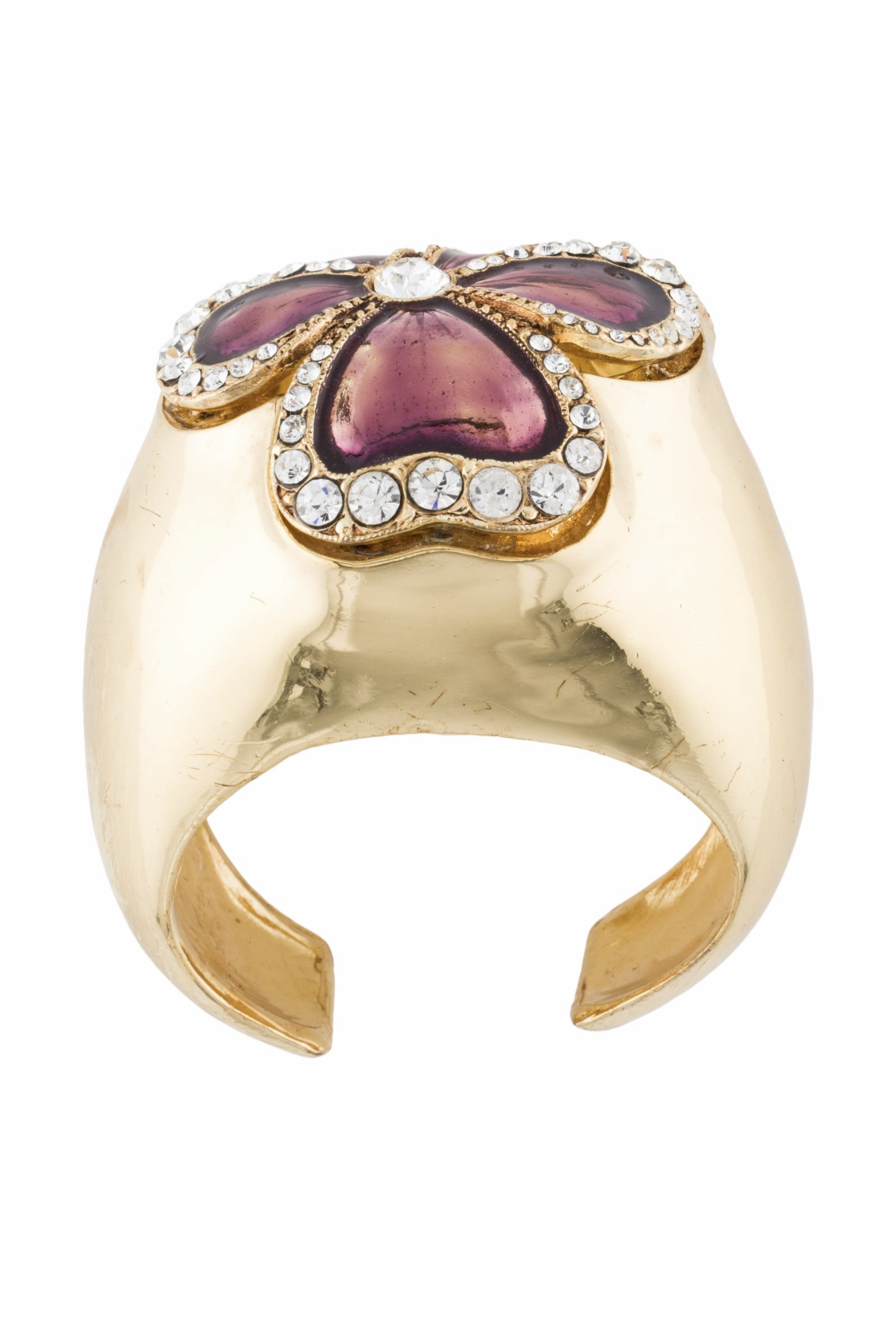 Saint Laurent Gold Floral Enamel Crystal Massive Cuff Bracelet