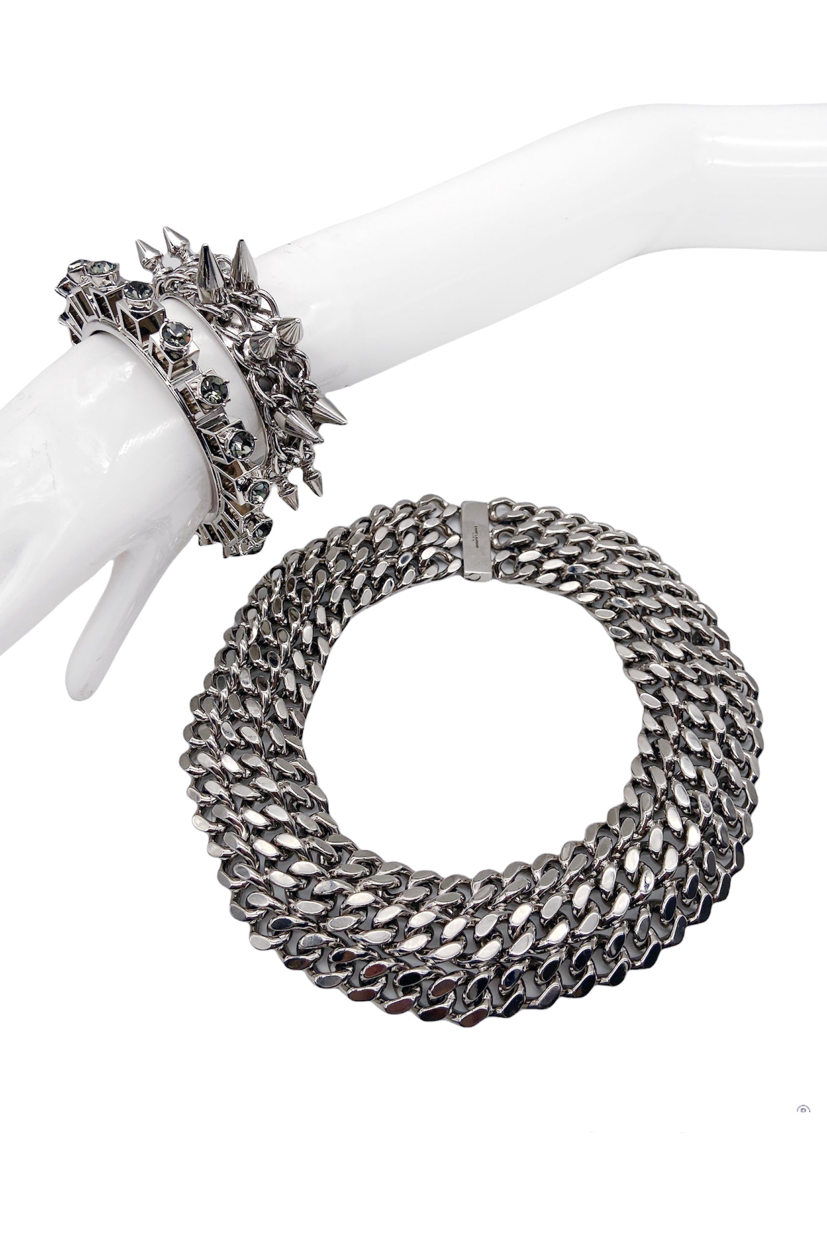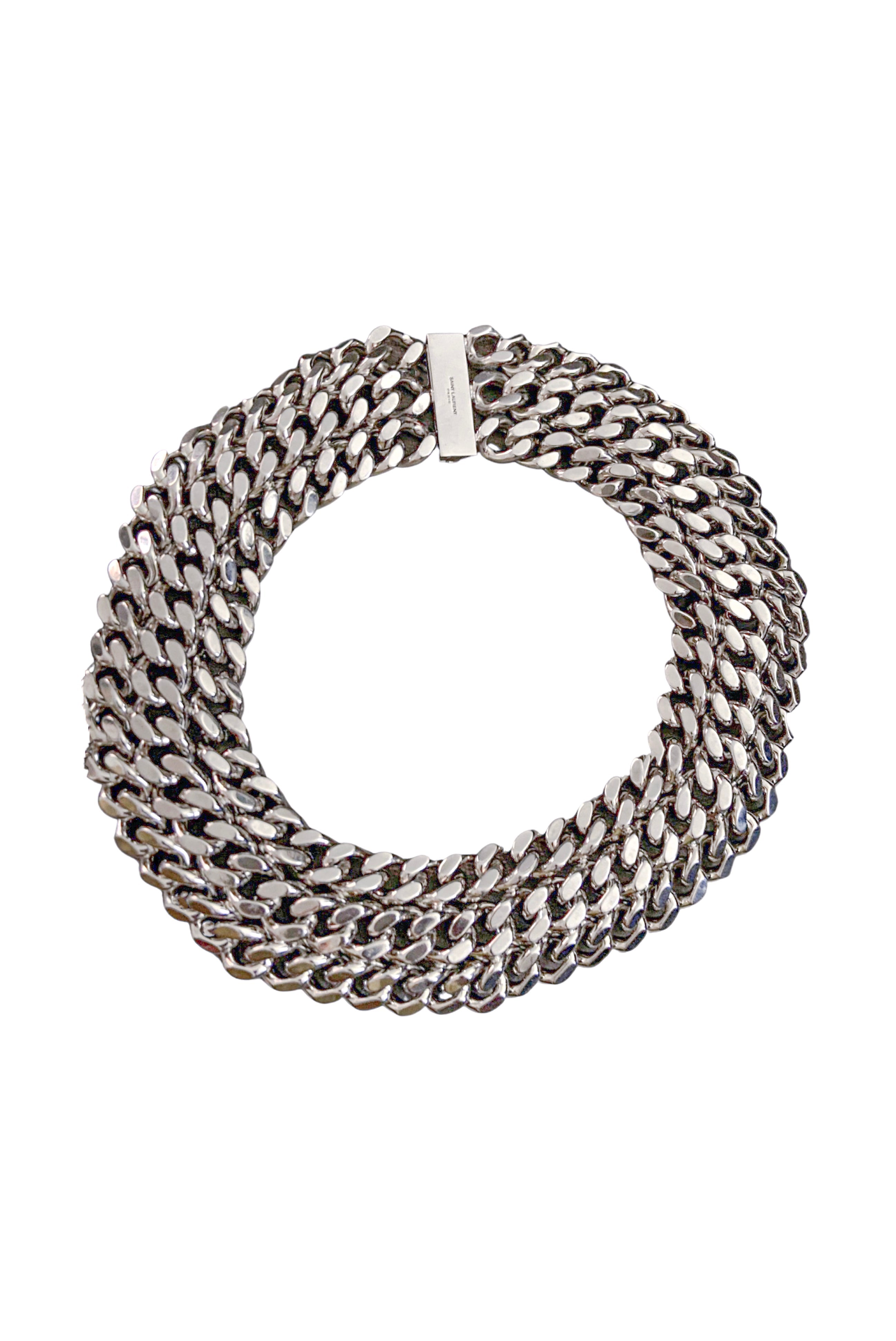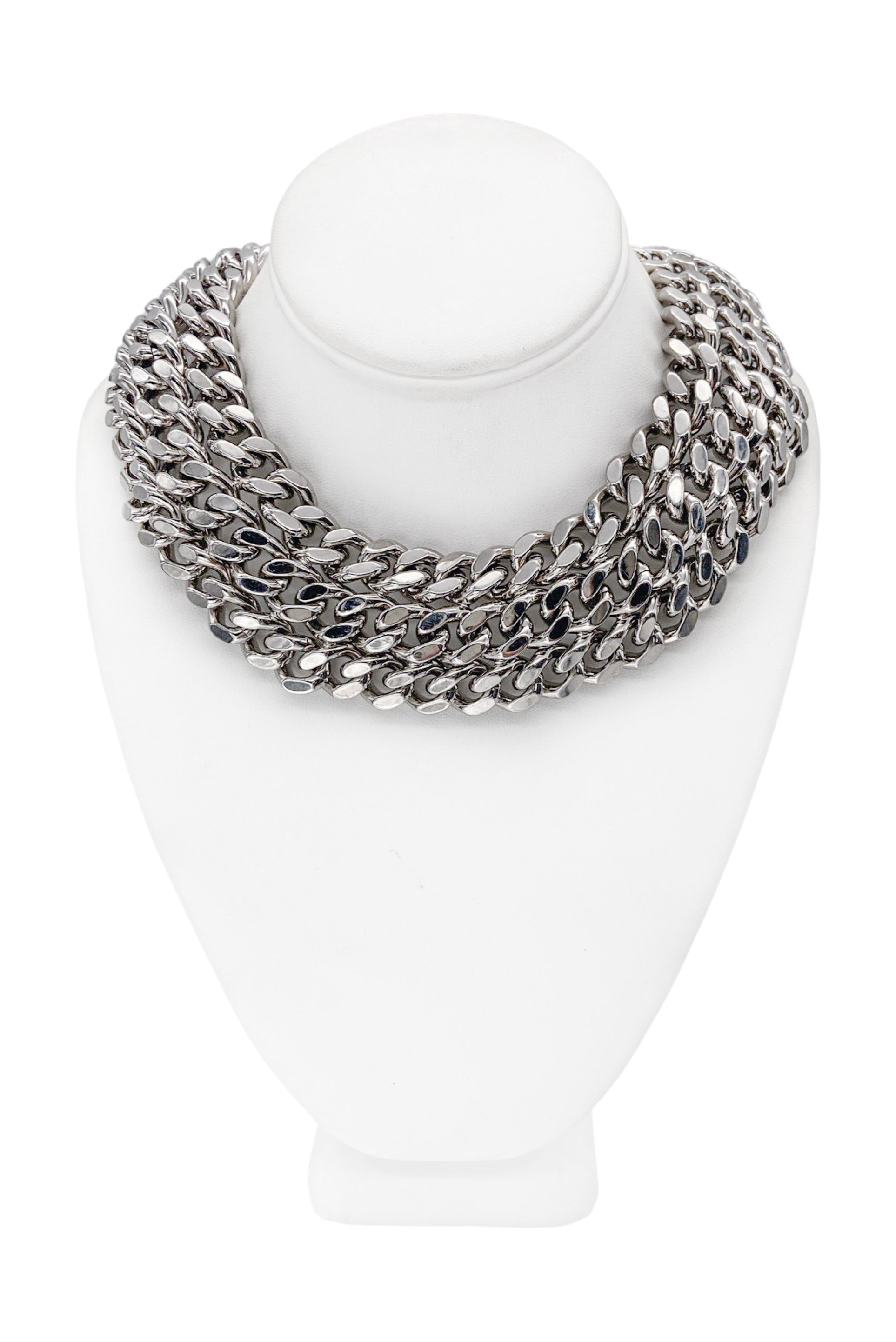 Saint Laurent Silver Chrome Triple Chain Link Thick Collar Necklace