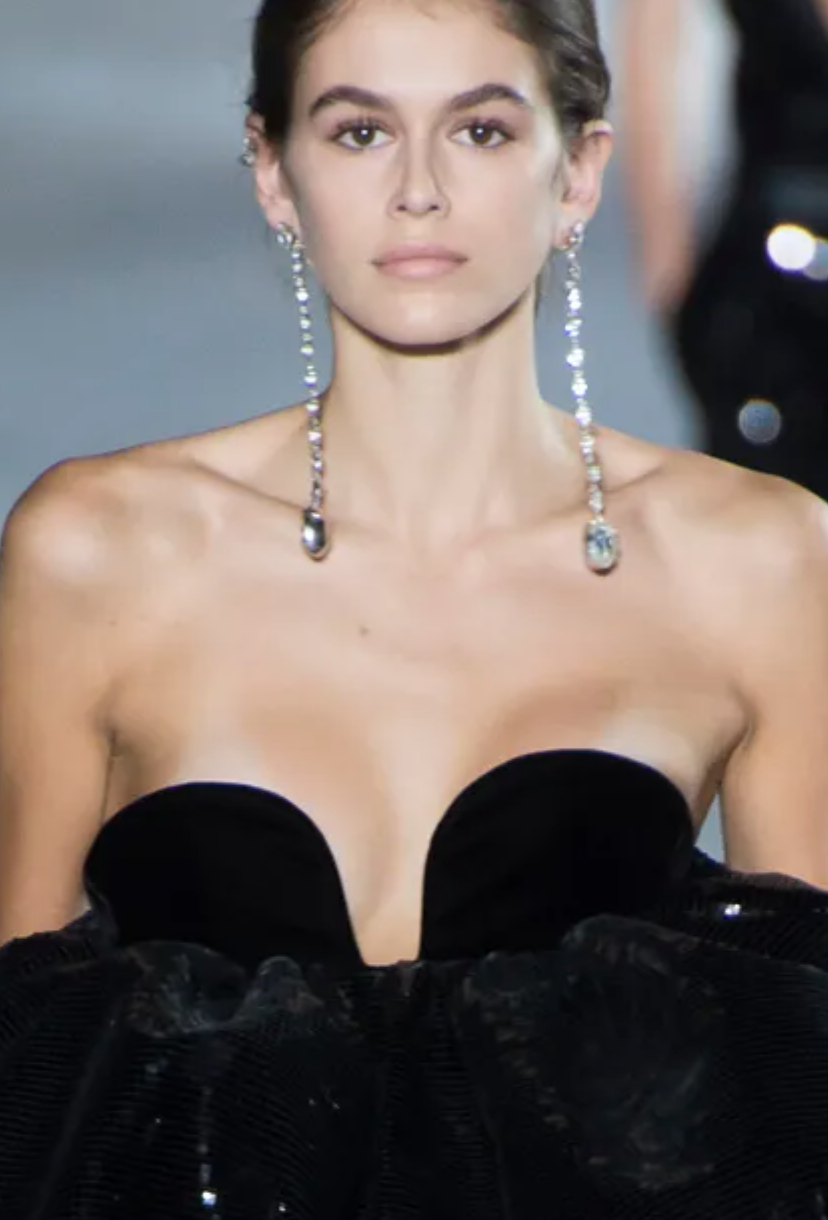 Saint Laurent Silver Crystal Long Dangle Drop Earrings Runway Spring 2018