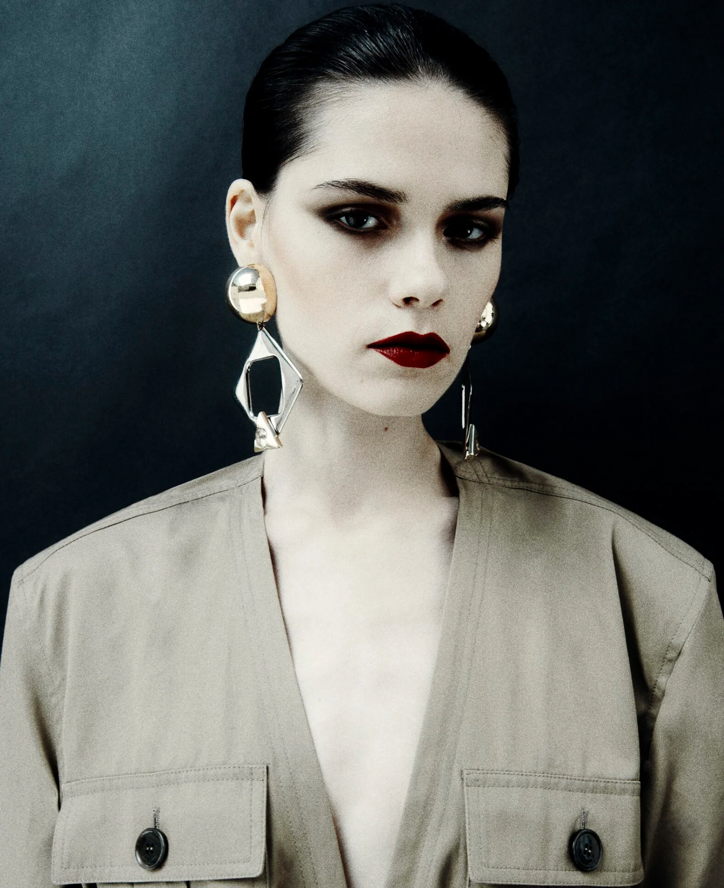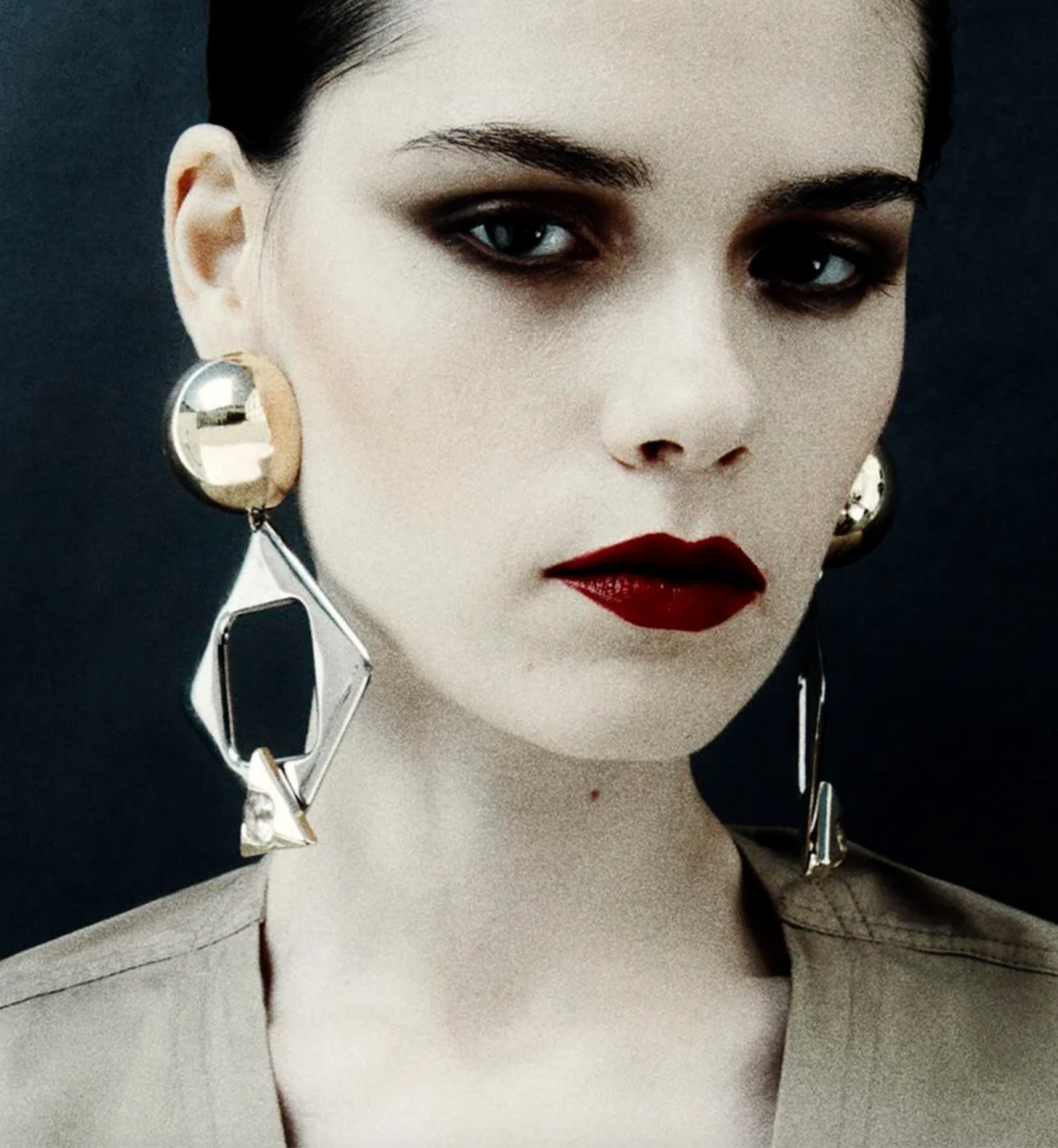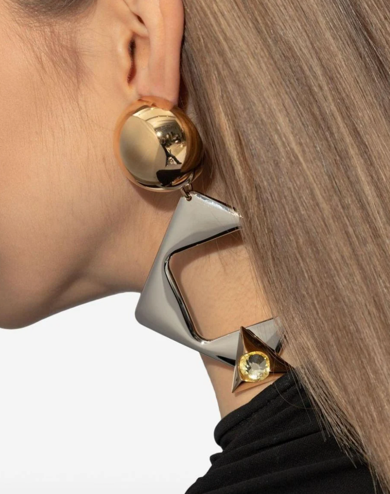 Saint Laurent Silver Gold Gem Stone Geometric Oversized Earrings
