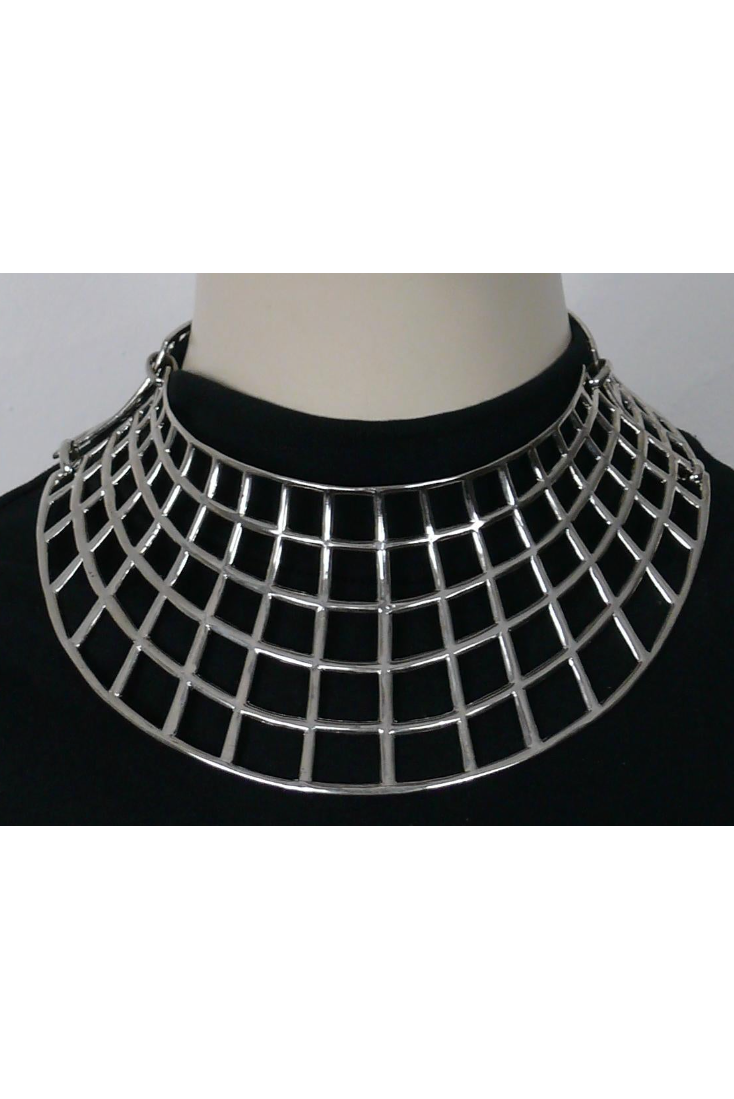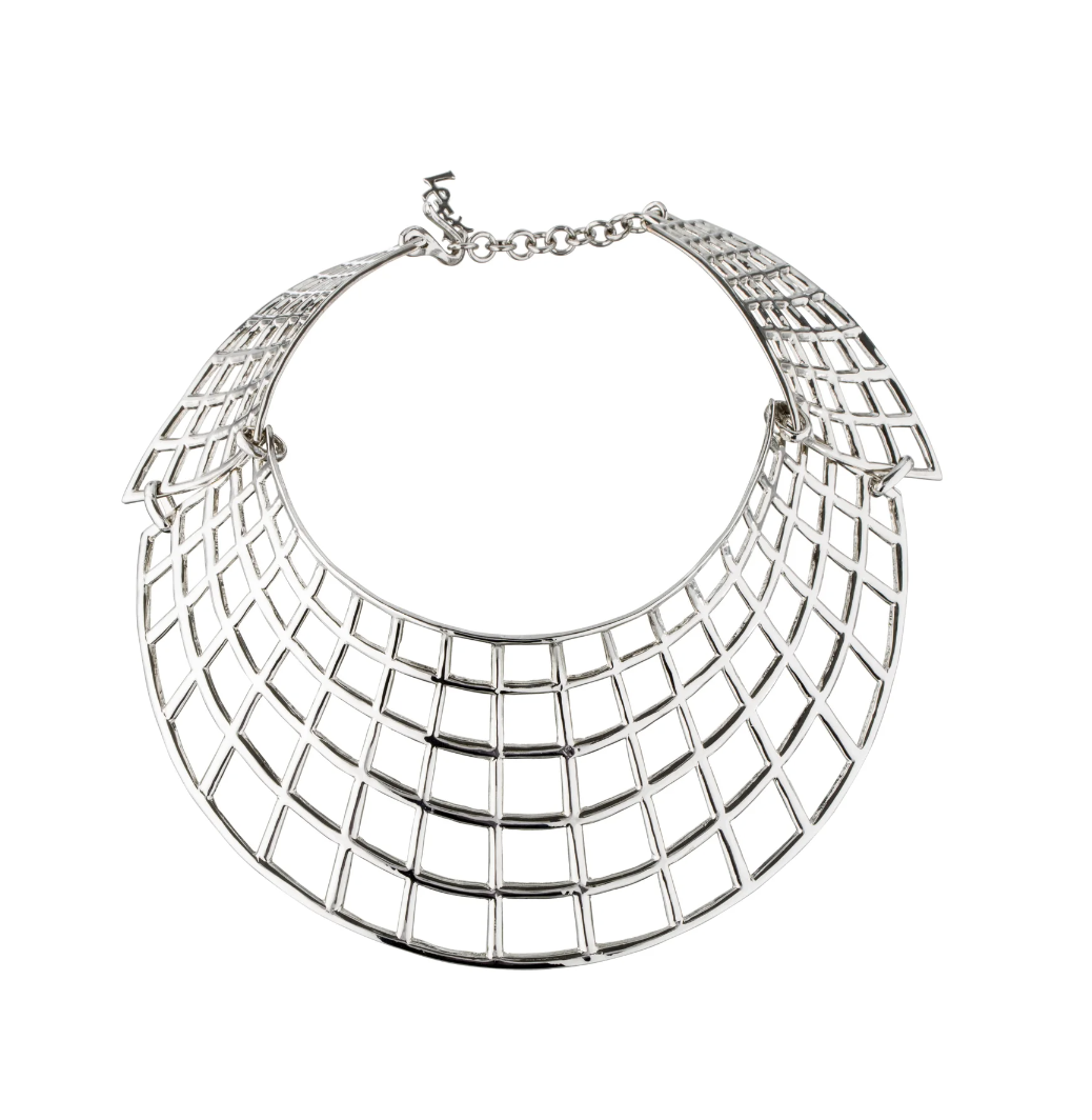 Saint Laurent Silver Grid Cage "Eifel Tower" Choker Necklace Runway Spring 2009