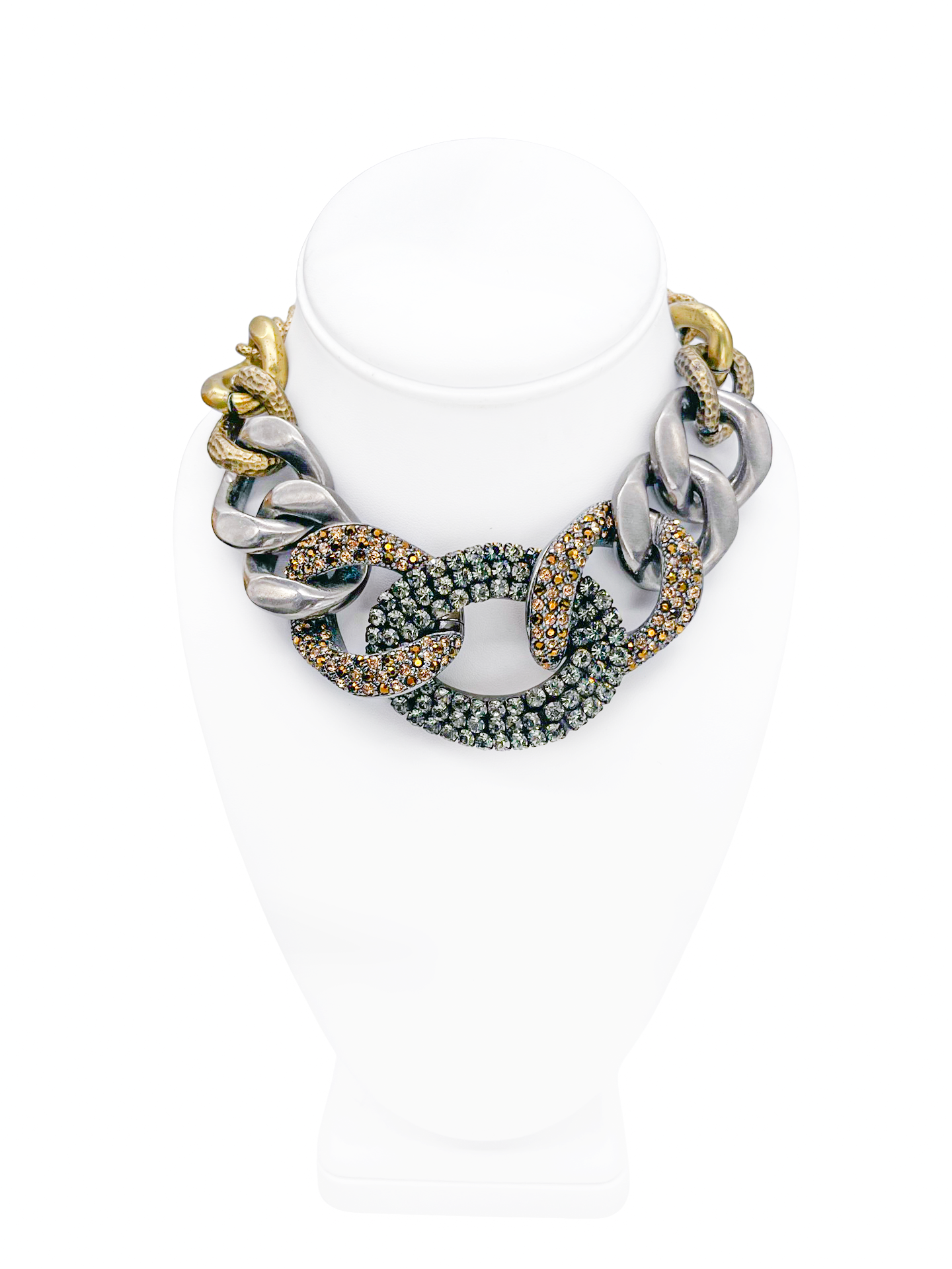 Saint Laurent YSL Gold Multicolor Textured Crystal Chain Link Necklace