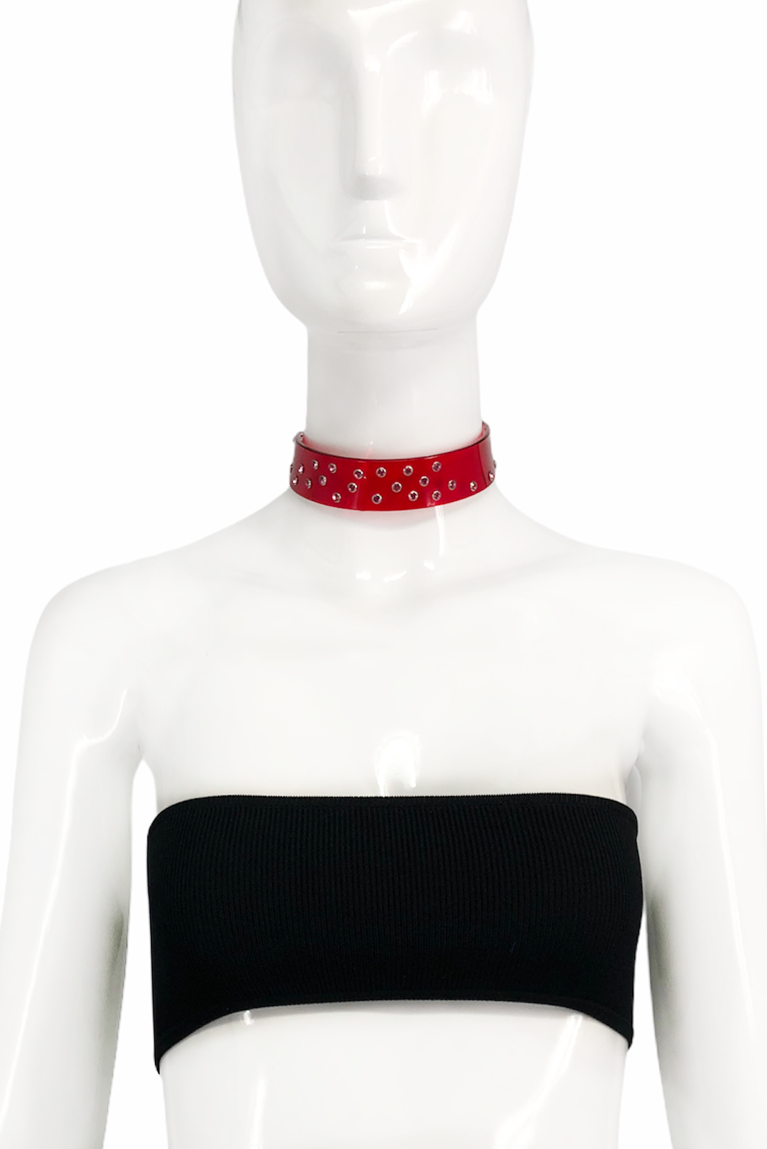 Scott Wilson Red Lucite Choker with Pink Diamonds early 2000's Couture