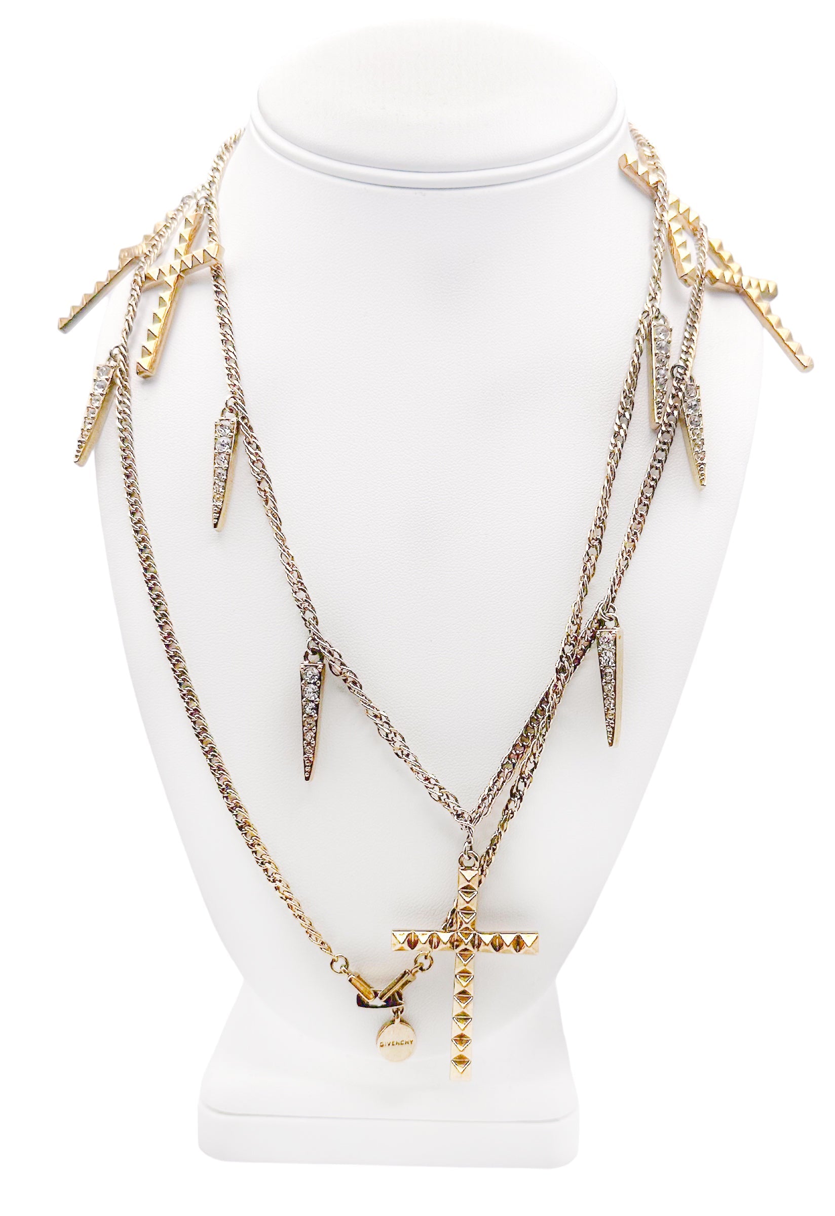 Givenchy Couture Gold Pyramid Multiple Cross and Spike Necklace