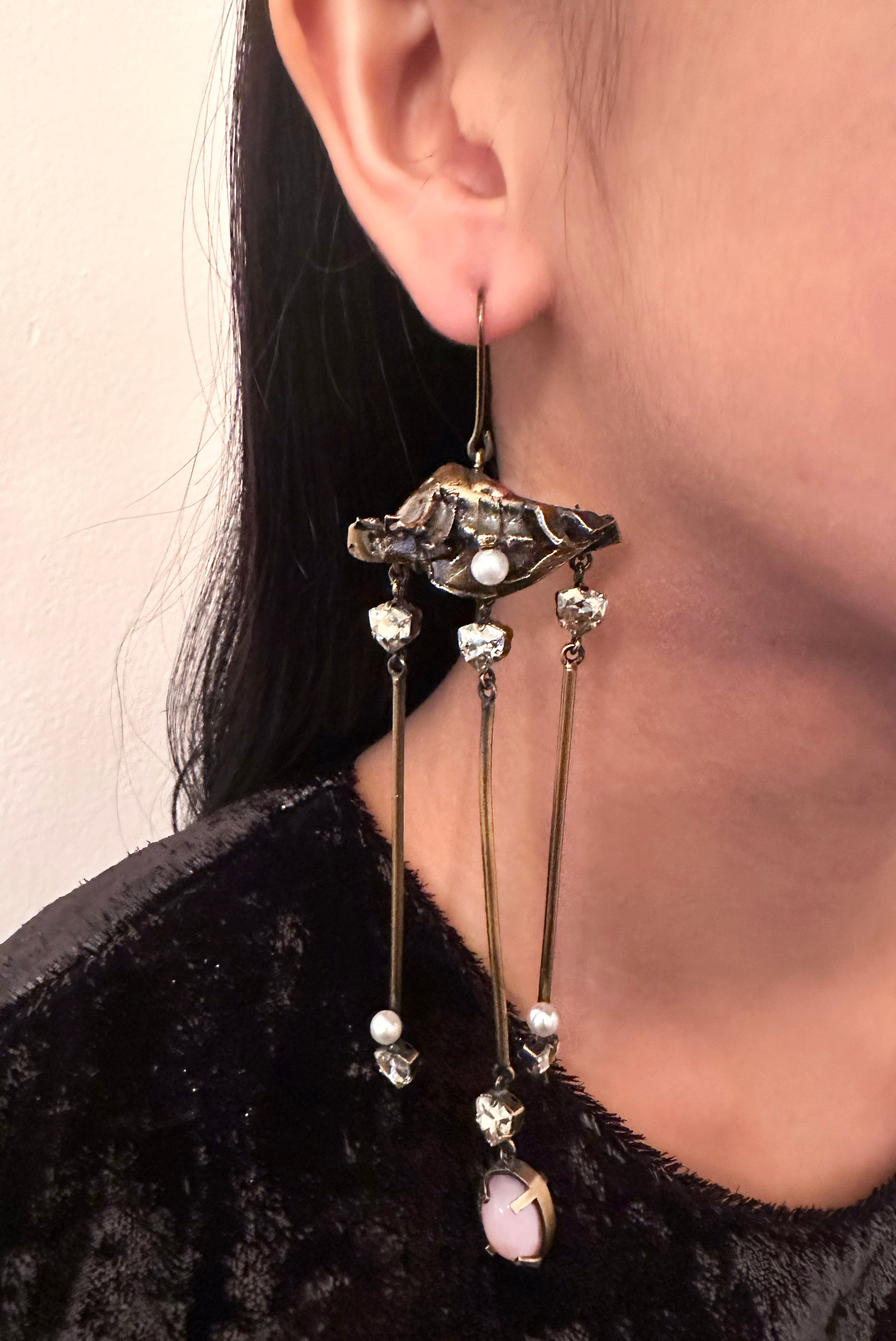 Valentino Bronze Crystal Pearl Pink Gem Stone Oversized Earring