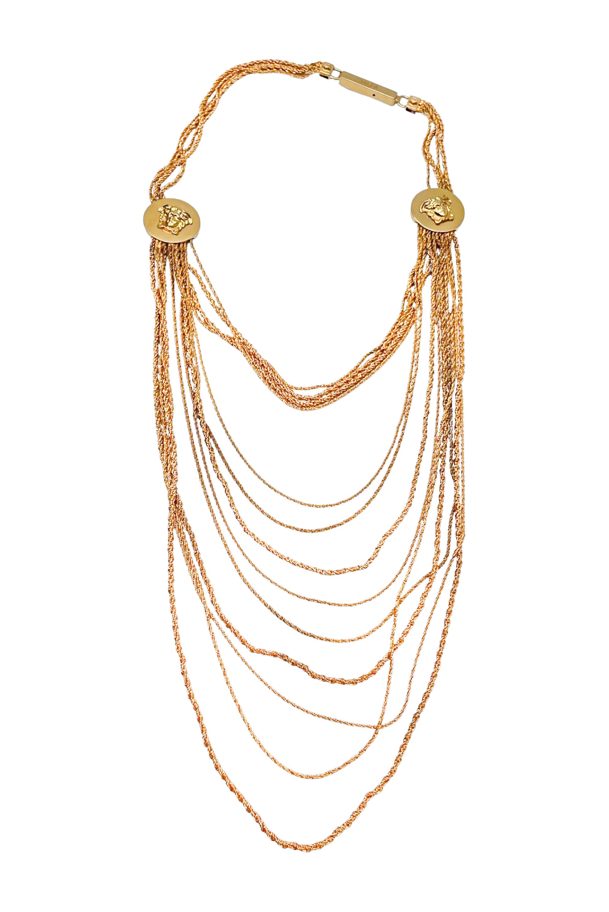 Versace Gold Multiple Chain Waterfall Medusa Necklace