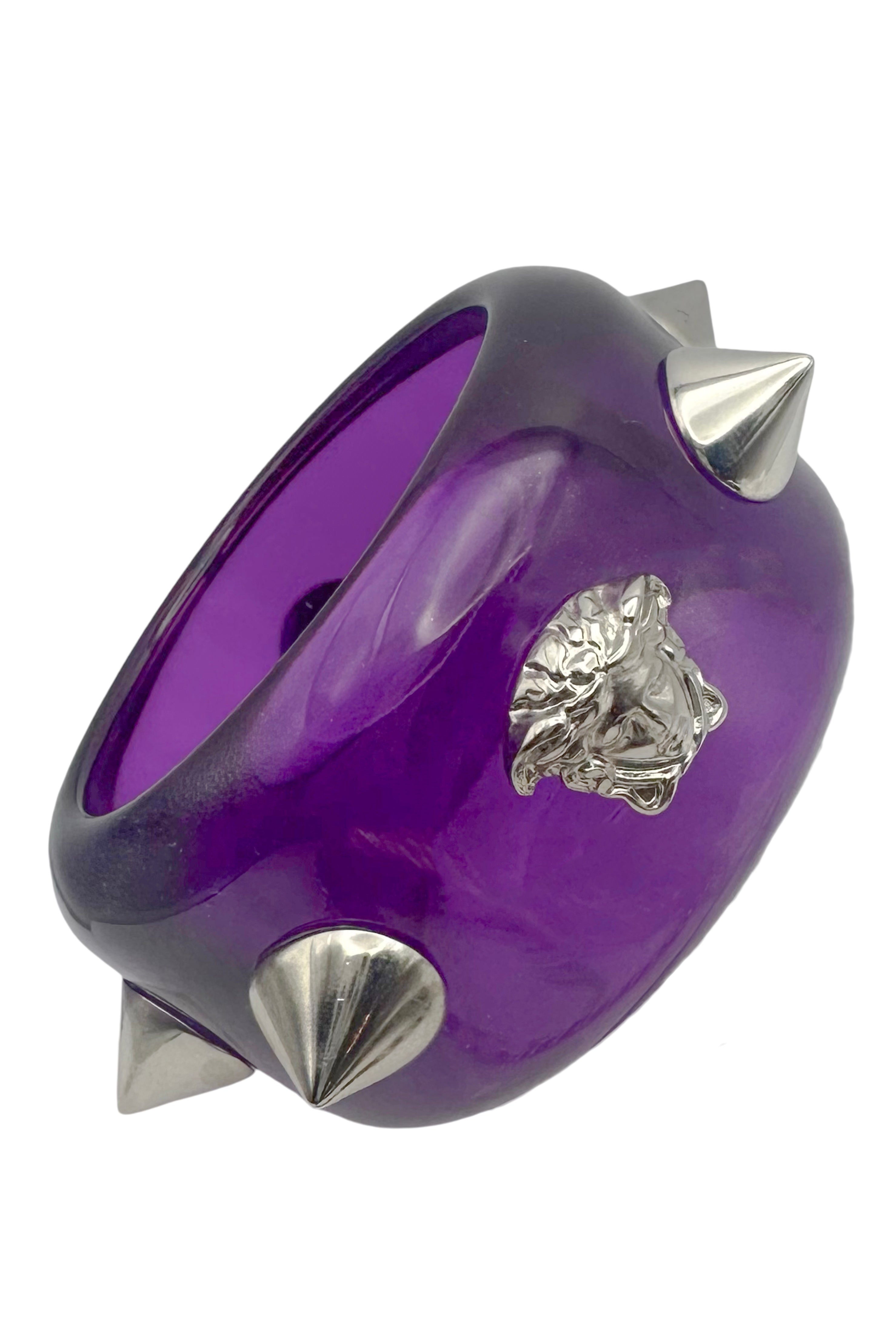 Versace Purple Oversized Lucite Resin Silver Spike Medusa Bracelet