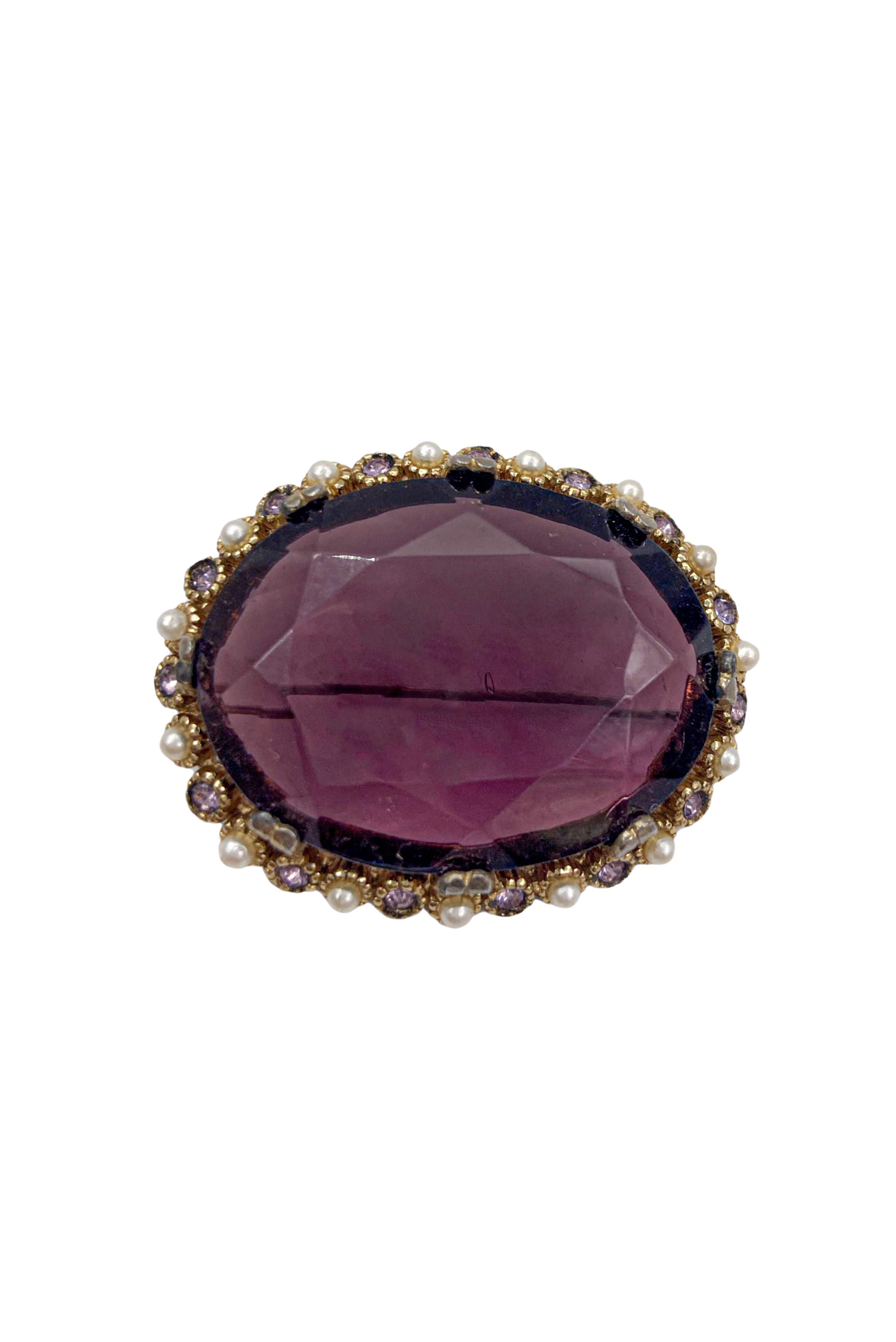 Vintage Amethyst Massive Oval Embroidered Pearl Edge Broach