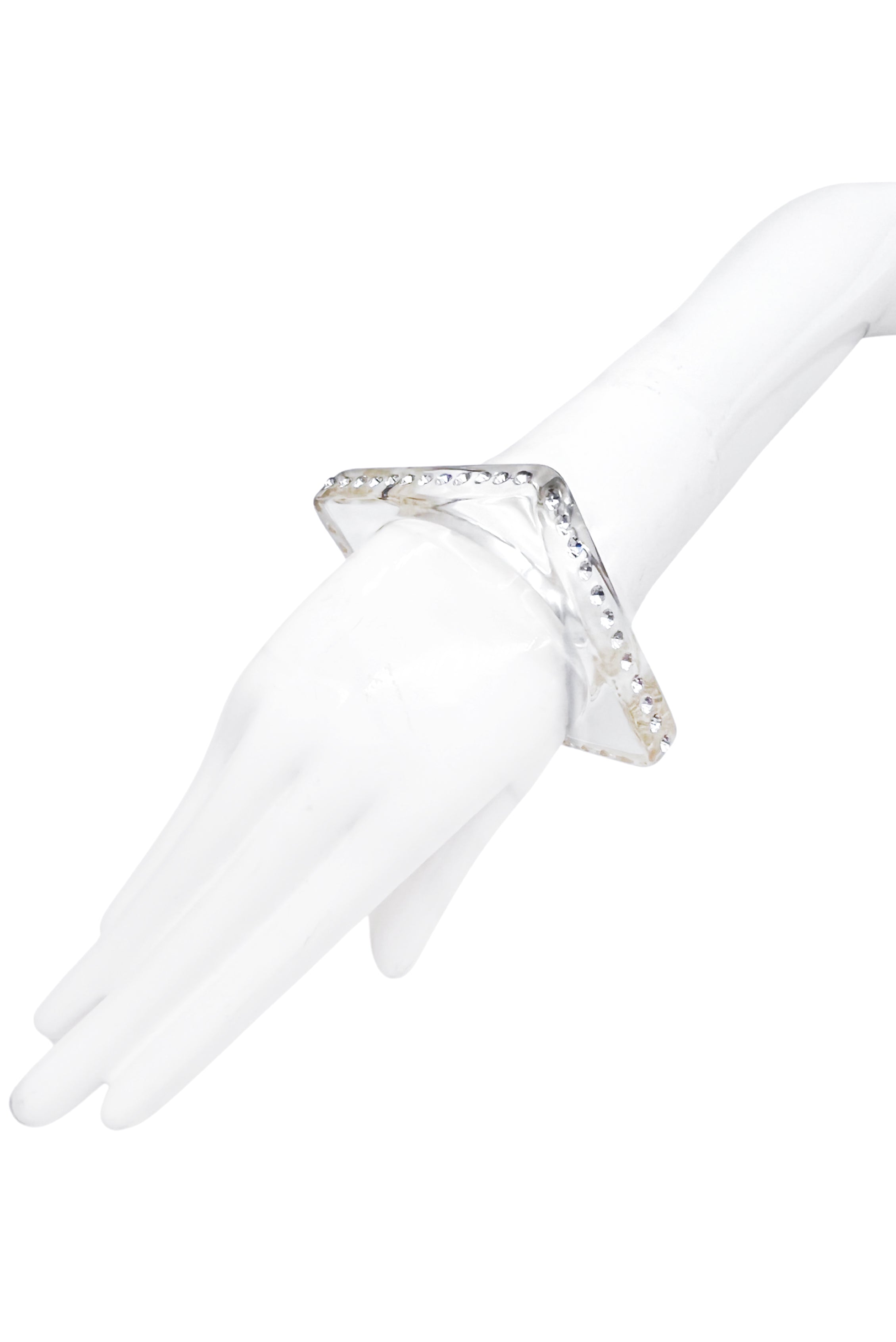 Vintage Clear Lucite Square Bangle Bracelet with Crystal Details