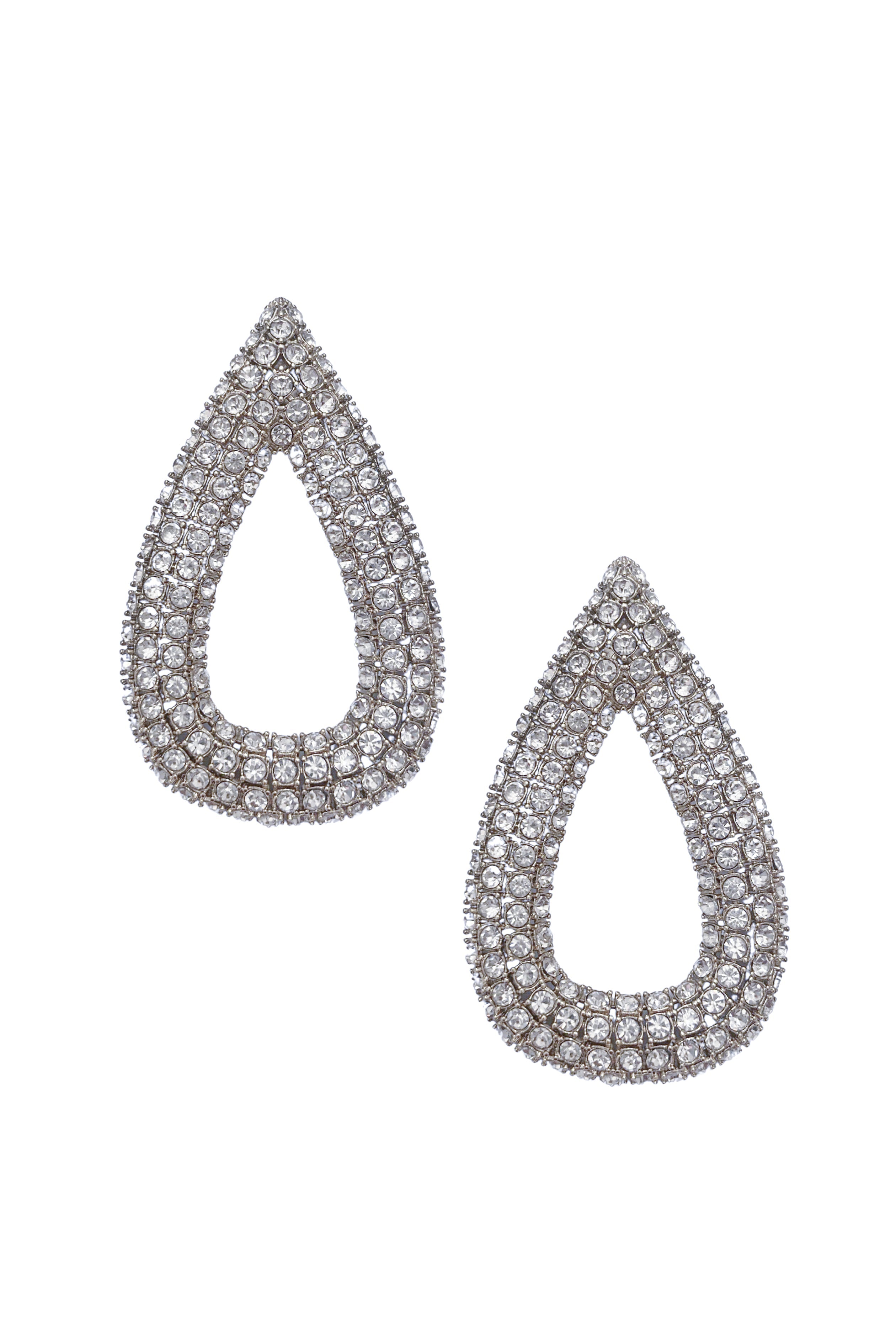 Vintage Silver Crystal Rhinestone Large Tear Drop Pear Shaped Earring