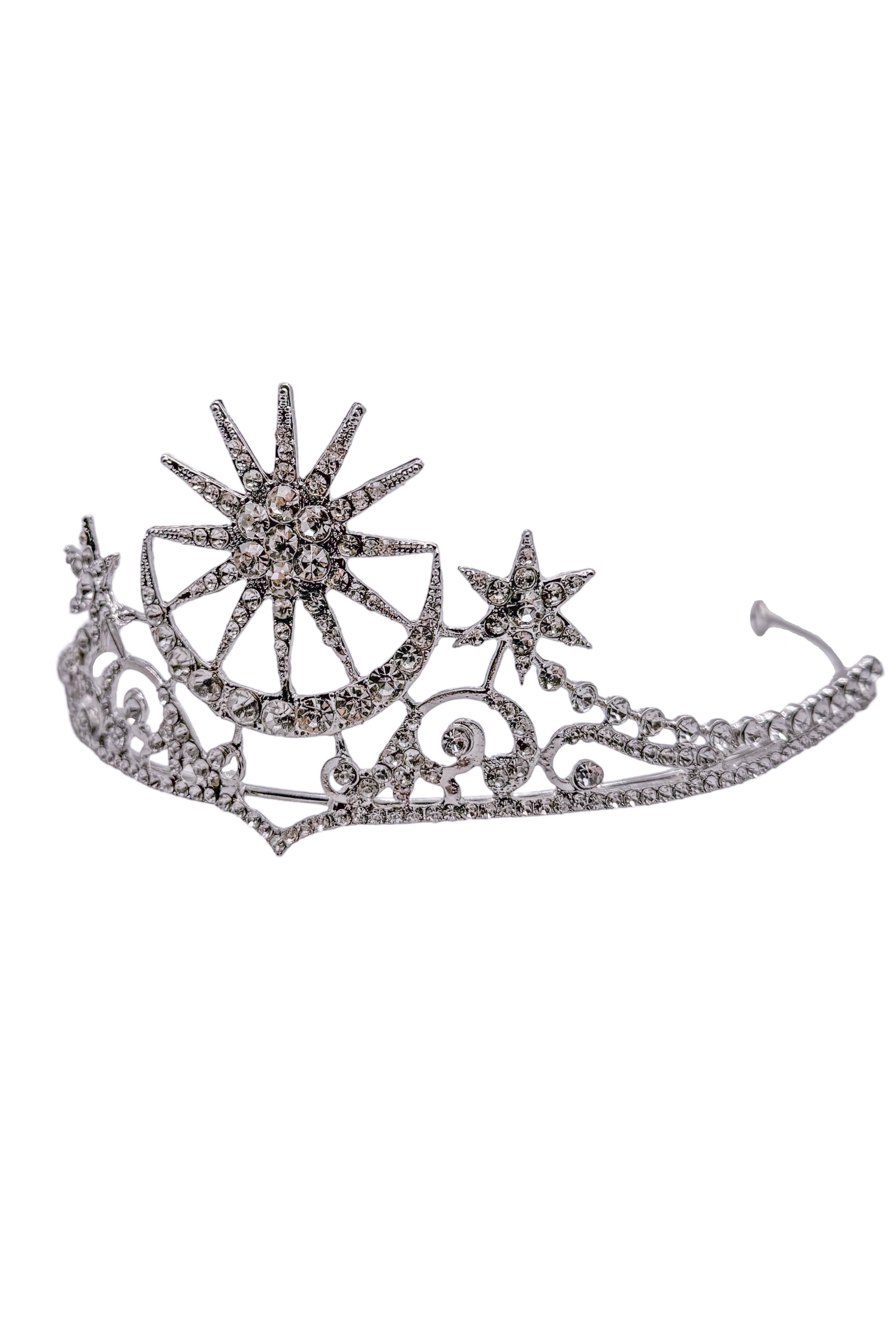 Vintage Crystal Silver Rhinestone Art Deco Star Tiara