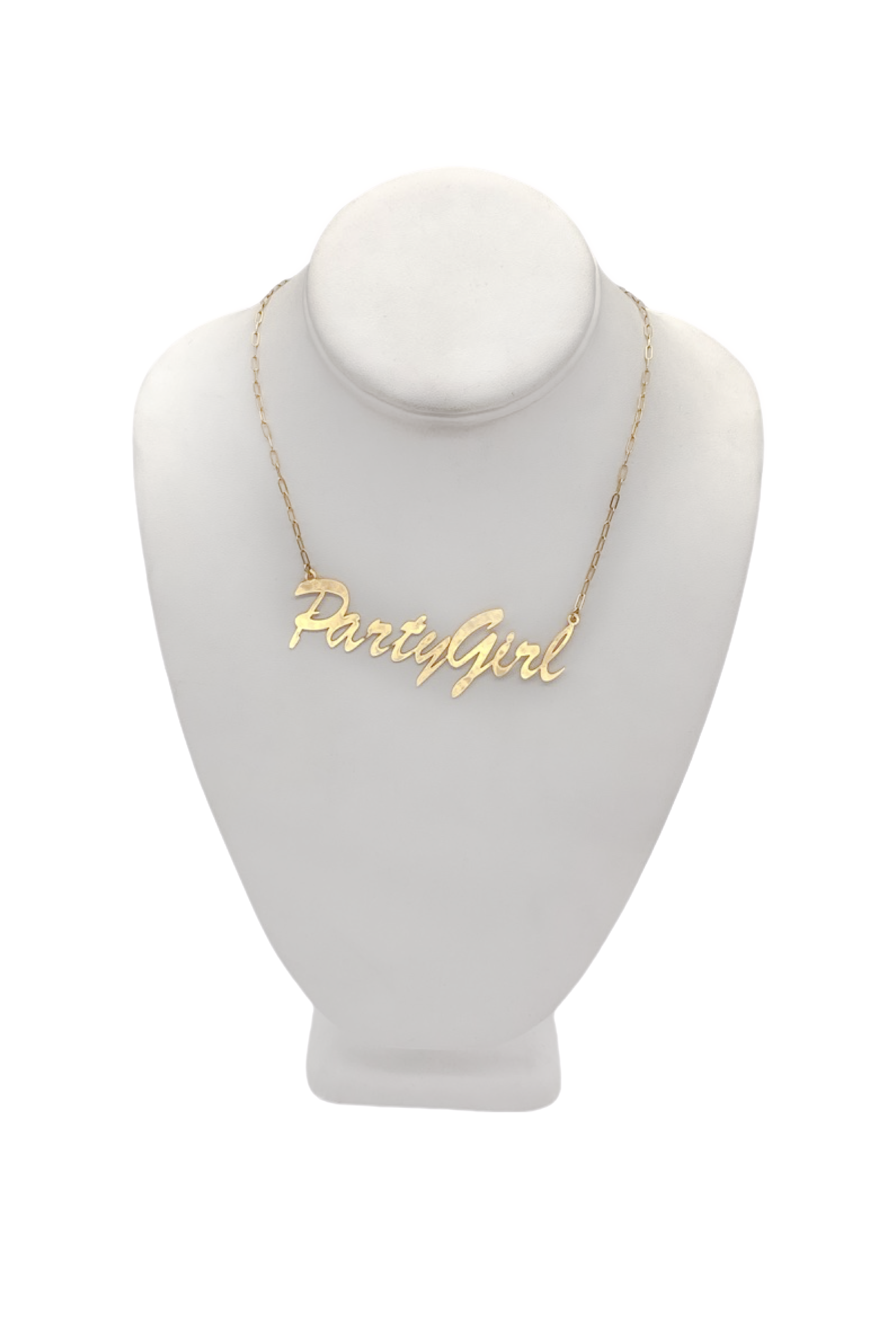 Vintage Gold "Party Girl" Logo Sex & the City Style Necklace Y2K