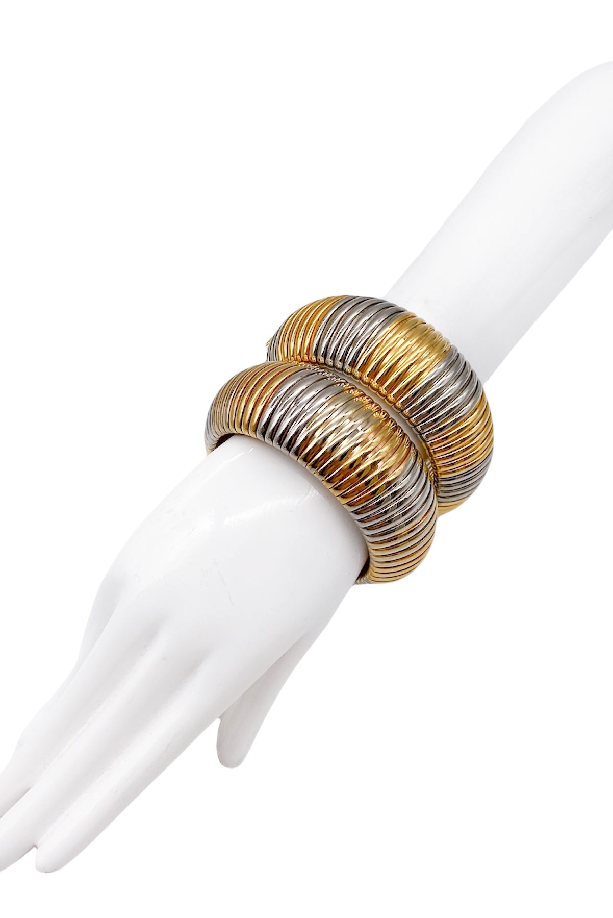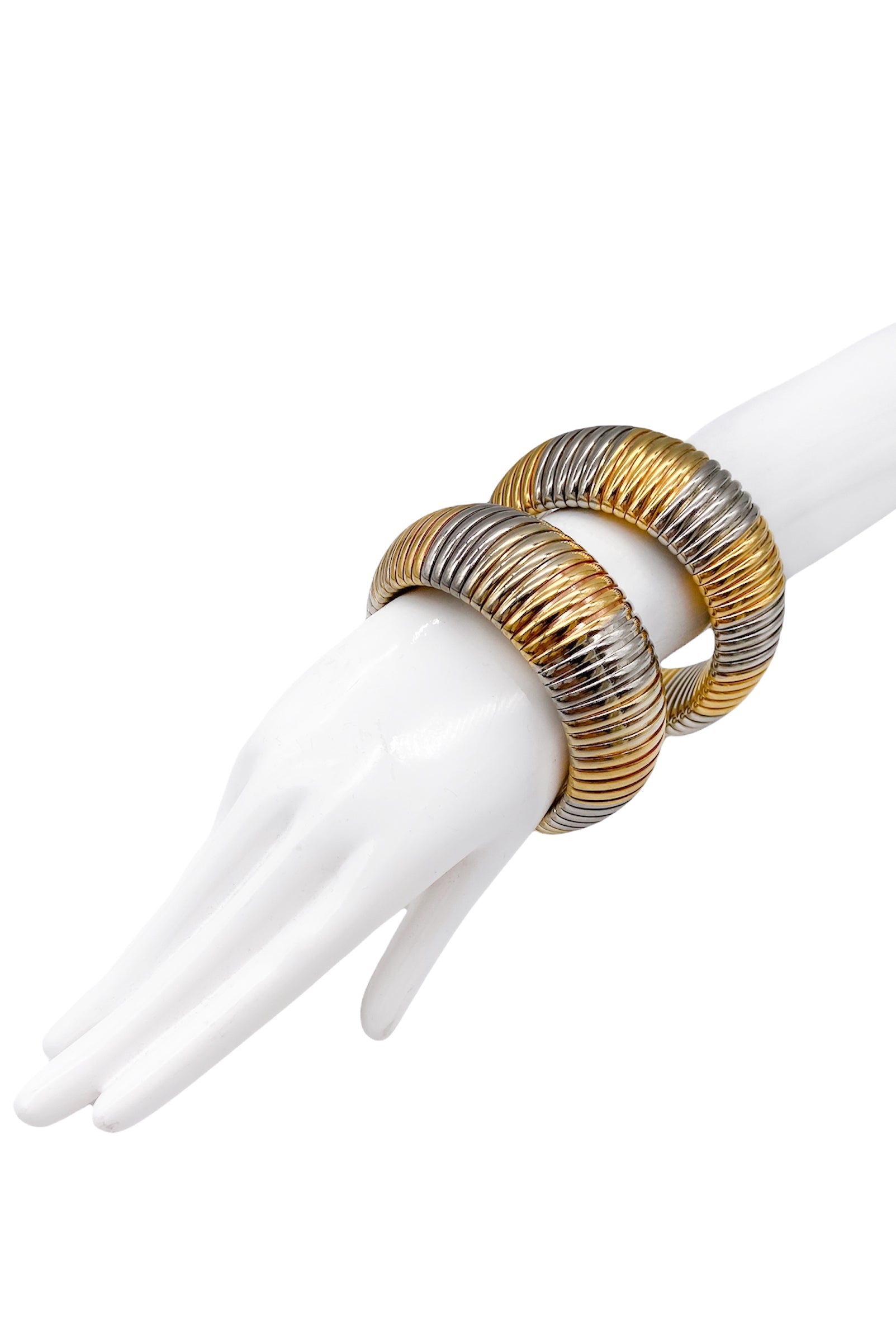 Vintage Gold Silver Gray Metallic Ribbed Snake Bracelet Set of Two
