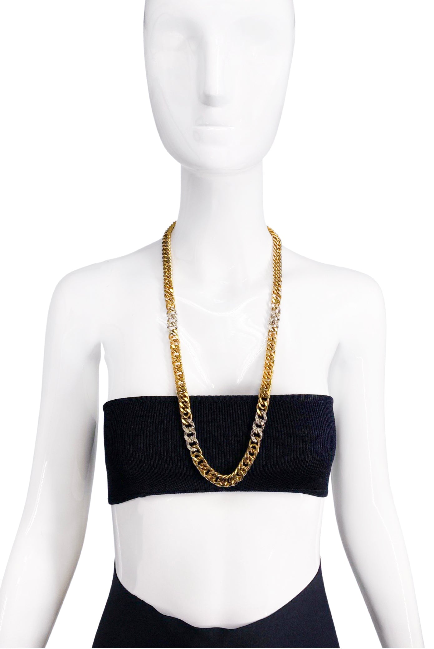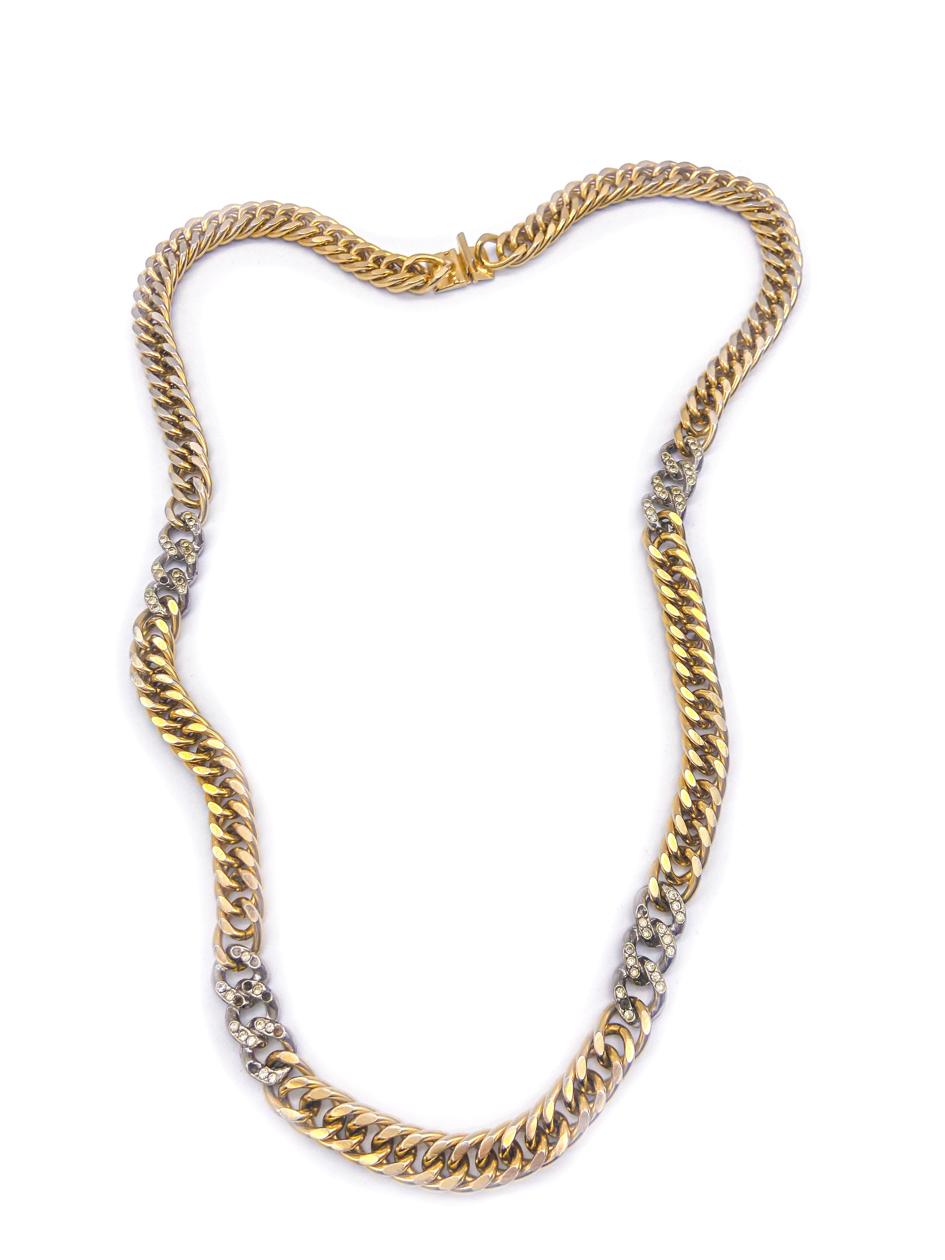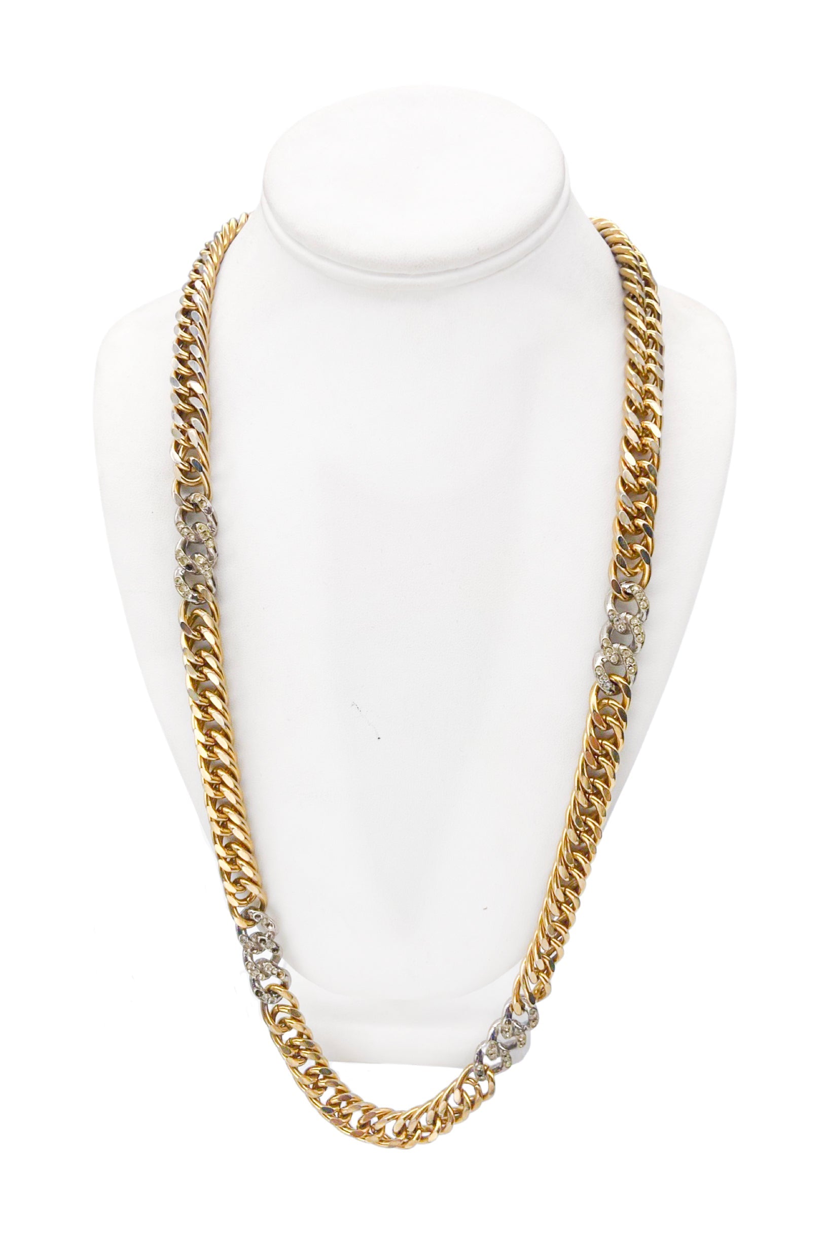 Vintage Gold Silver Rhinestone Long Chain Link Necklace