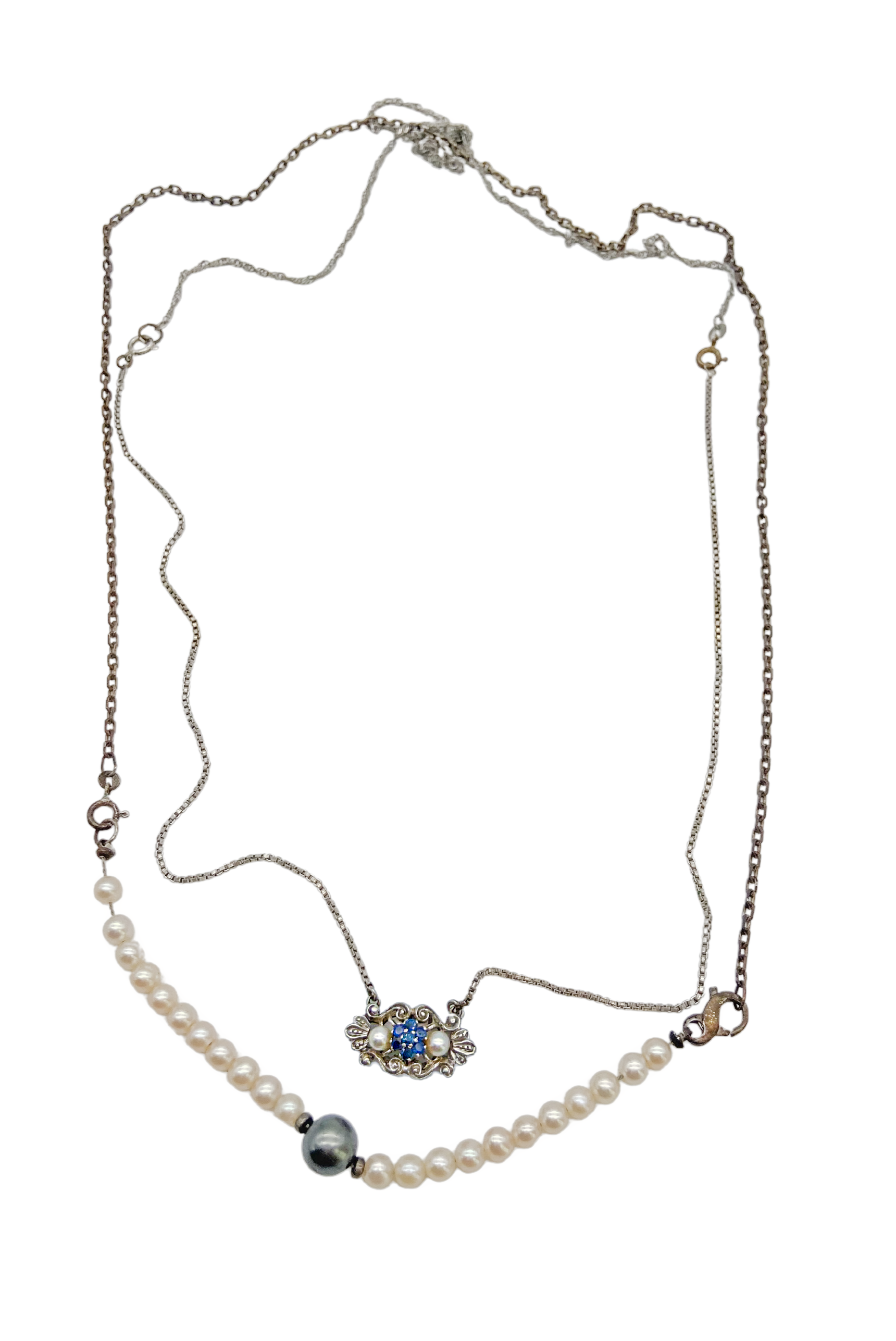 Vintage Pearl Sapphire Black Pearl Necklaces