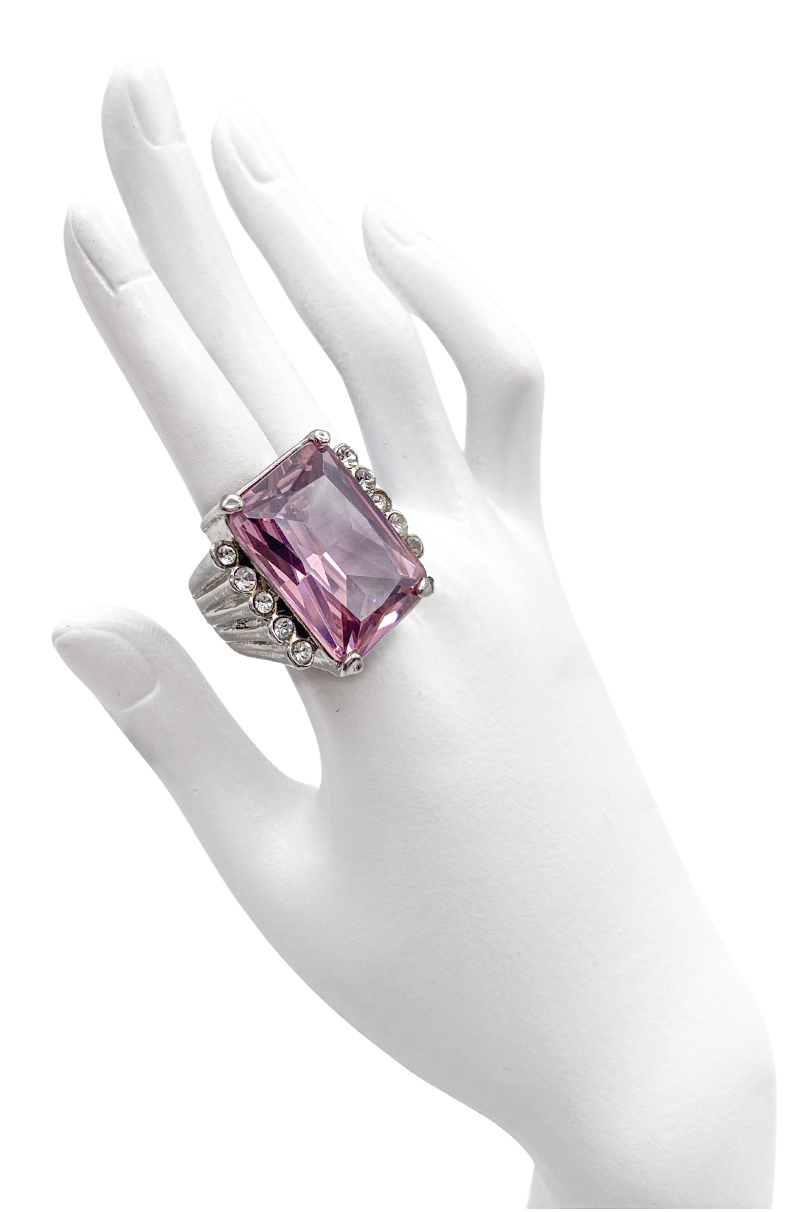 Vintage Silver Pink Crystal Massive Estate Cocktail Ring