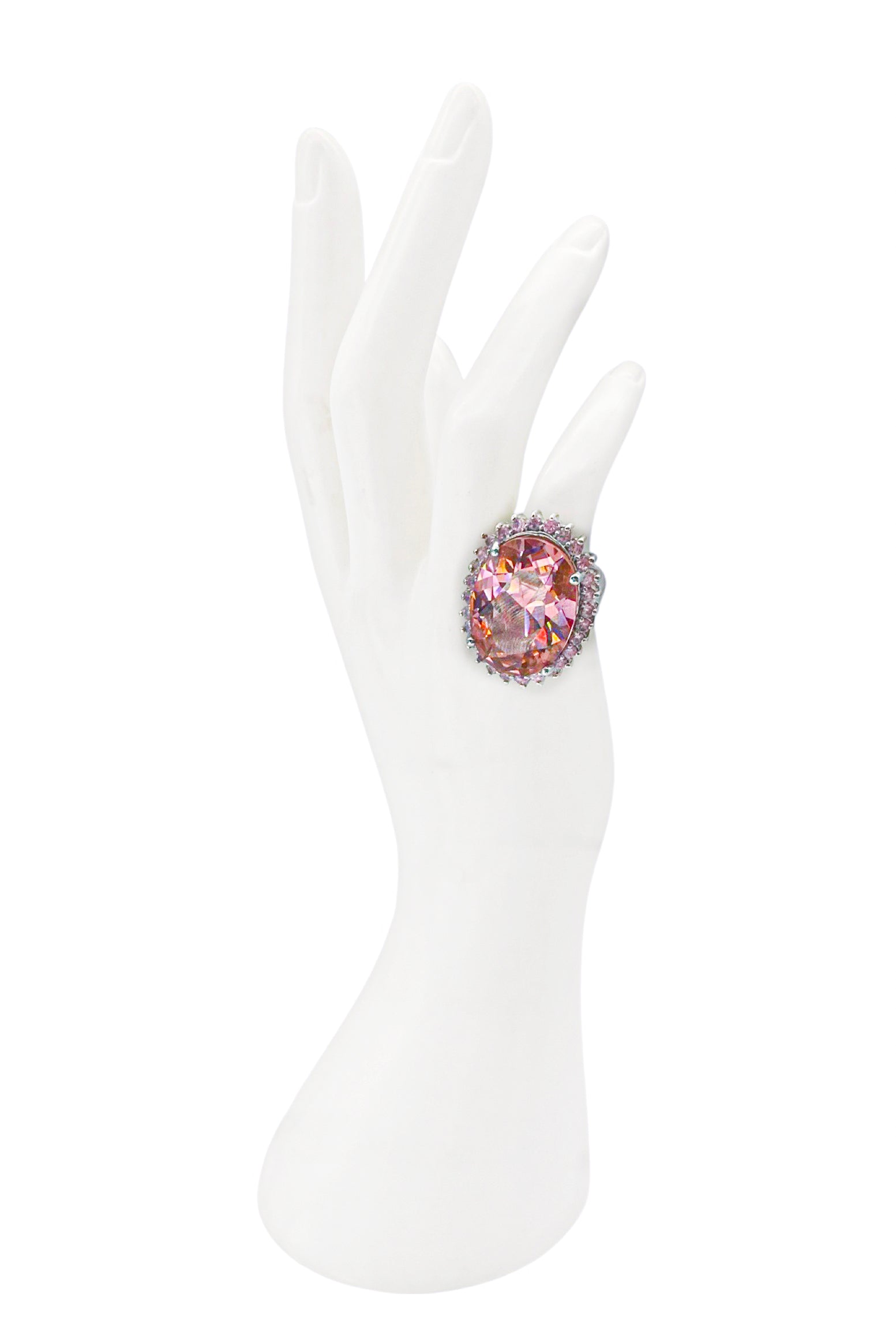 Vintage Pink Stone Set Diamond Silver Cocktail Ring