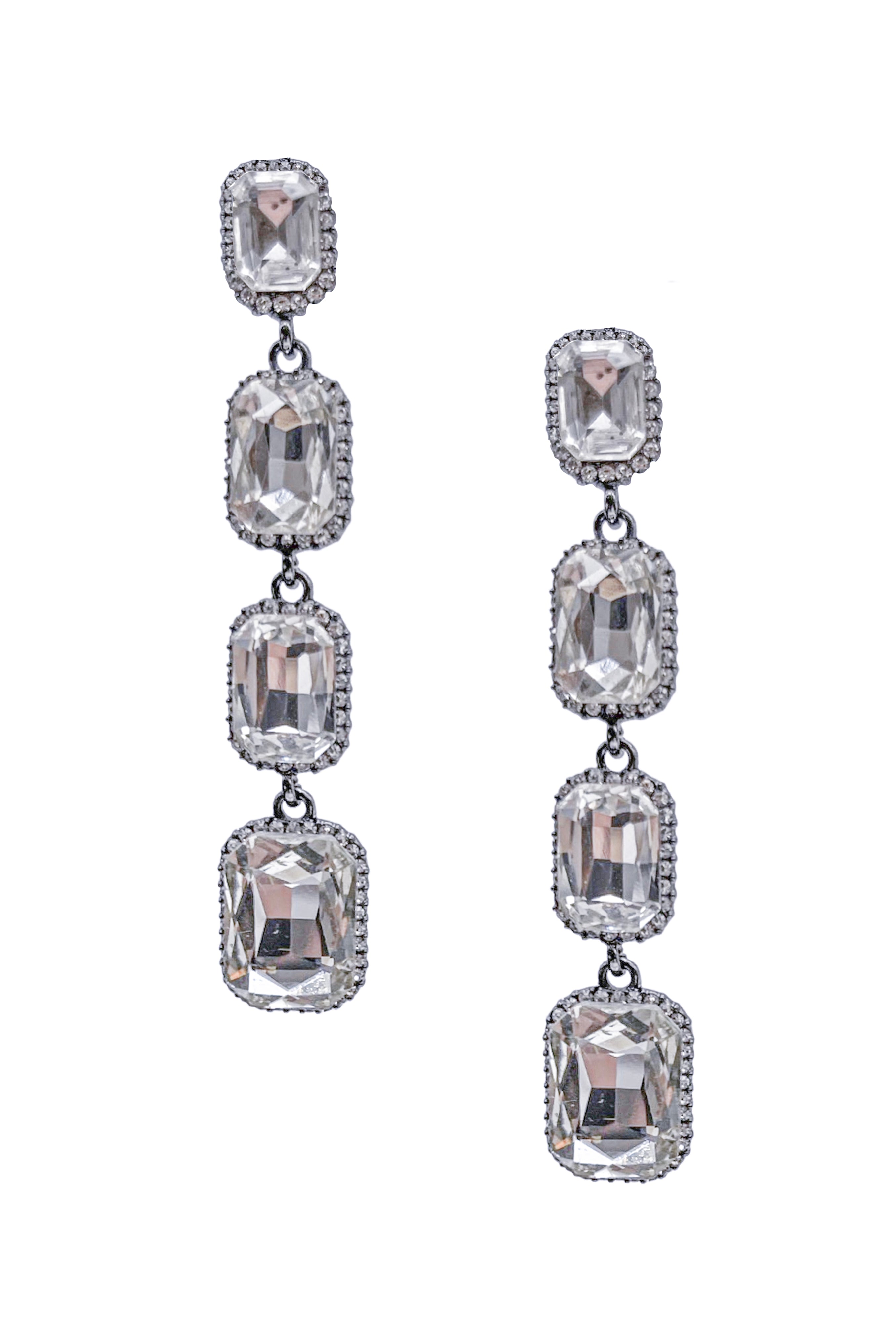 Vintage Silver Crystal Quadruple Dangling Earrings