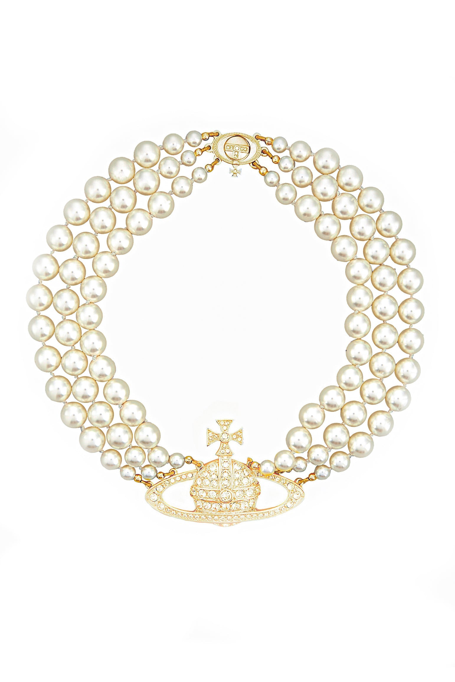 Vivienne Westwood Gold Orb Triple Pearl Choker Necklace