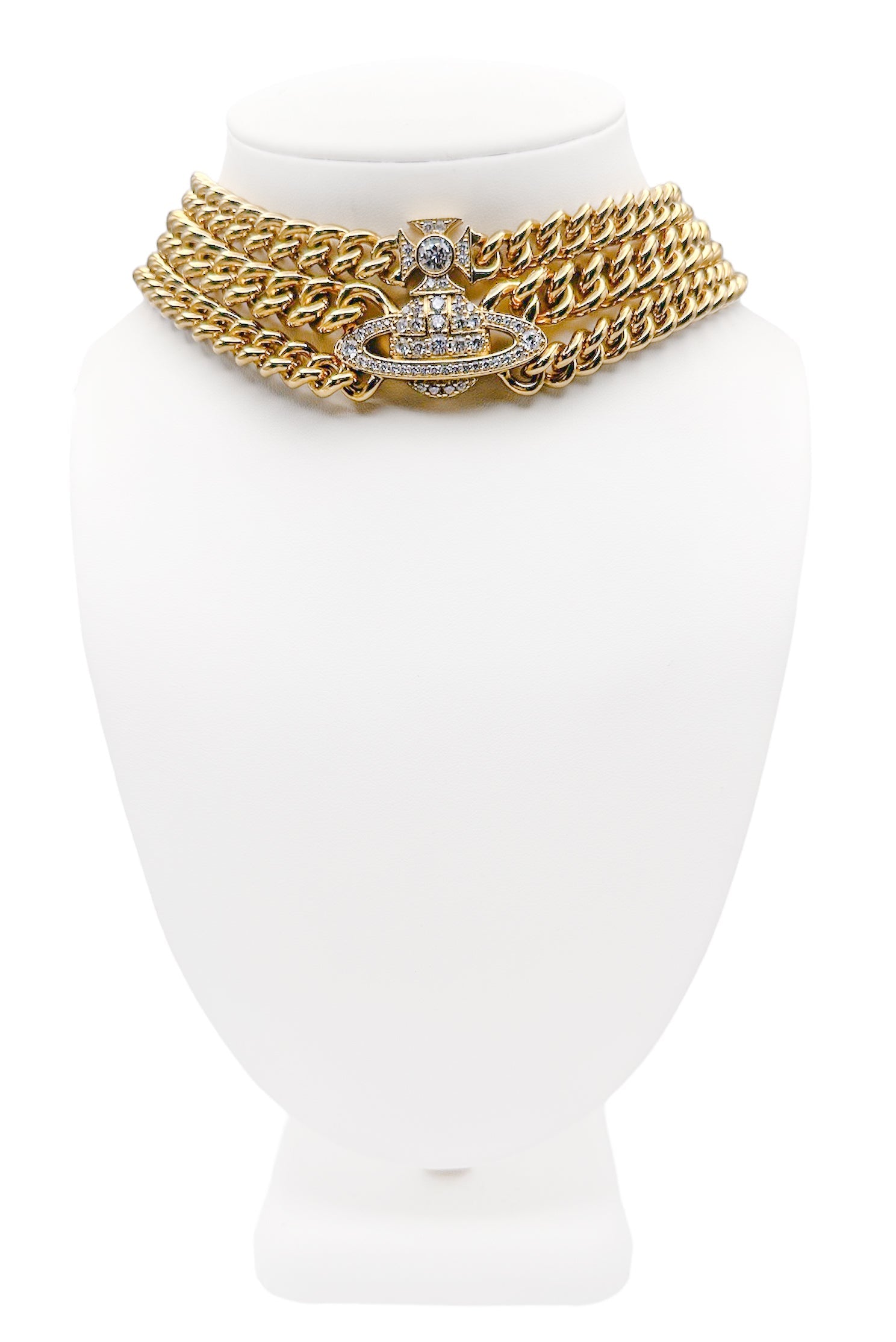 Vivienne Westwood Gold Triple Metal Chain Crystal Orb Choker Necklace