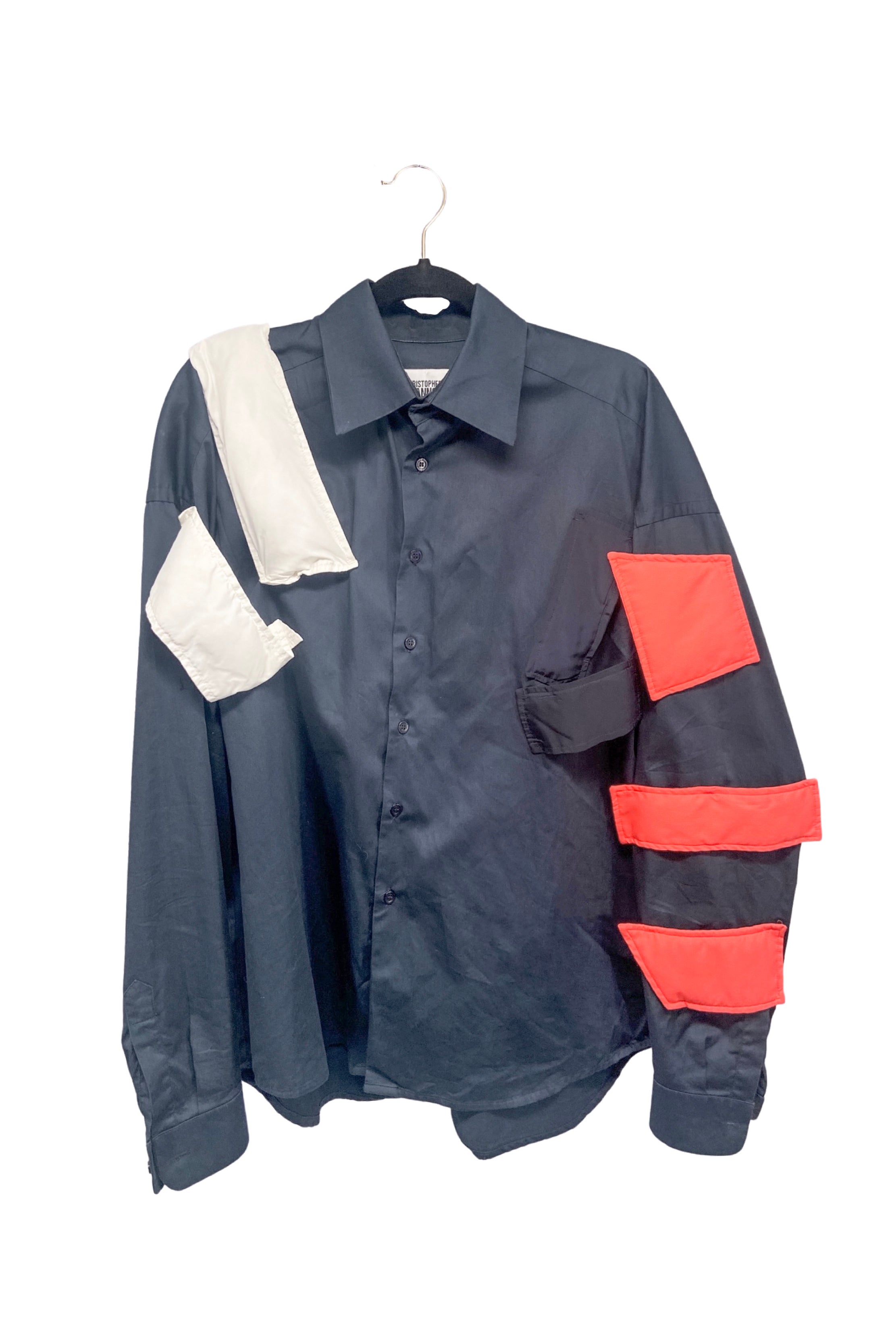Christopher Shannon Navy Blue Button-Up Shirt Jacket with Puffy Colorblock Patches
